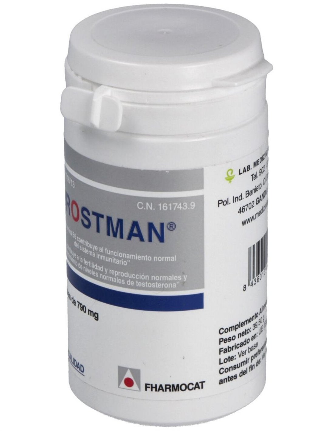 Agente de carga: Maltodextrina c.s.: Epilobio exto. (Epilobium angustifolium L.) 130 mg: Cápsula: Gelatina 120 mg: Ortiga verde exto. (Urtica dioca L.) 64 mg: Sabal serrulata exto. (Sabal serrulata Rohm.) 45 mg: Opuntia ficus-indica exto. (Opuntia ficus-indica L.) 40 mg: Antiaglomerante: Estearato de magnesio (E-470b) c.s.: Pygeum exto. (Pygeum africano Hook.) 25 mg: Antiaglomerante: Dióxido de silicio (E-551) c.s.: Sulfato de zinc 15 mg y Clorhidrato de piridoxina (Vit. B6) 2 mg.