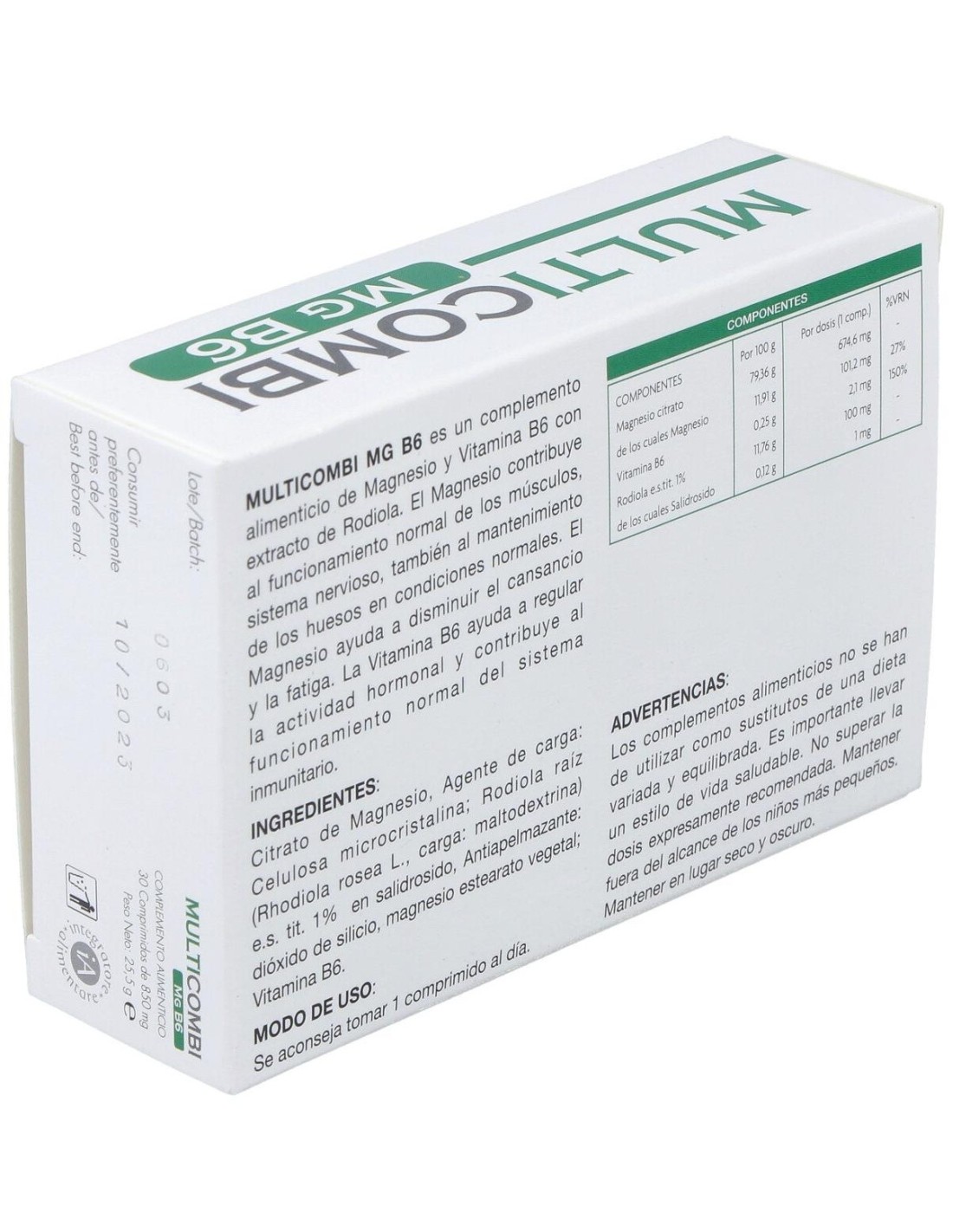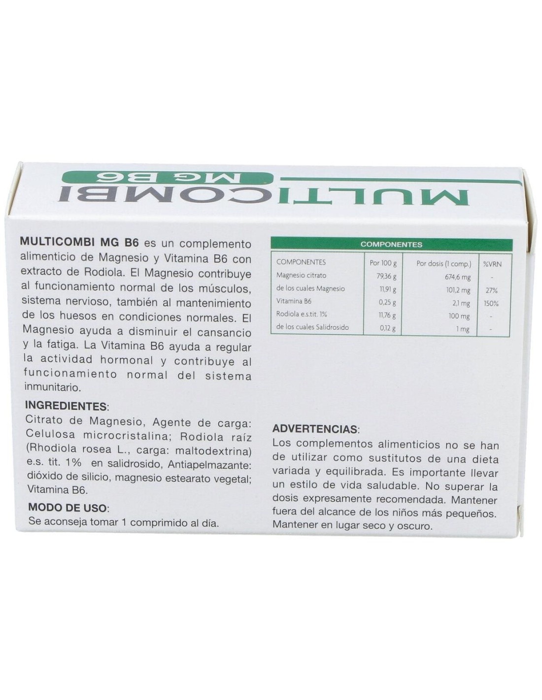 Magnesio citrato de los cuales Magnesio, Vitamina B6, Rodiola e.s.tit.1% de los cuales Salidrosido.