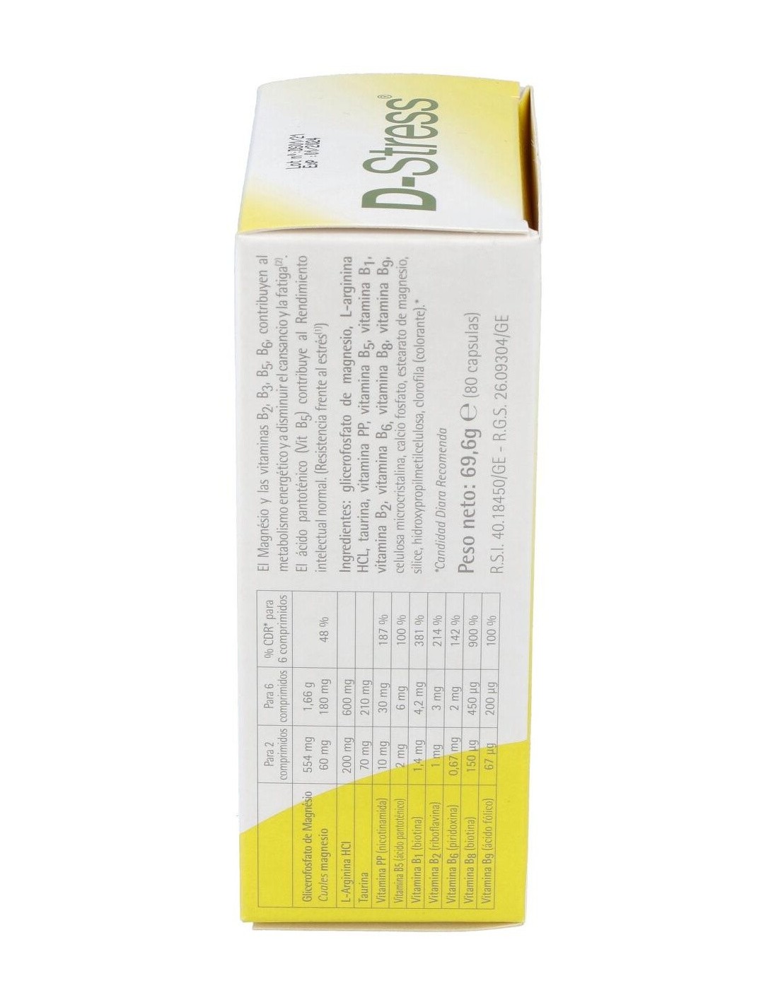 Hilefarma D-Stress 80comp es un complemento alimenticio que te ayudará a controlar situaciones pasajeras de nervios y estrés gracias a una fórmula nutritiva y equilibrada.