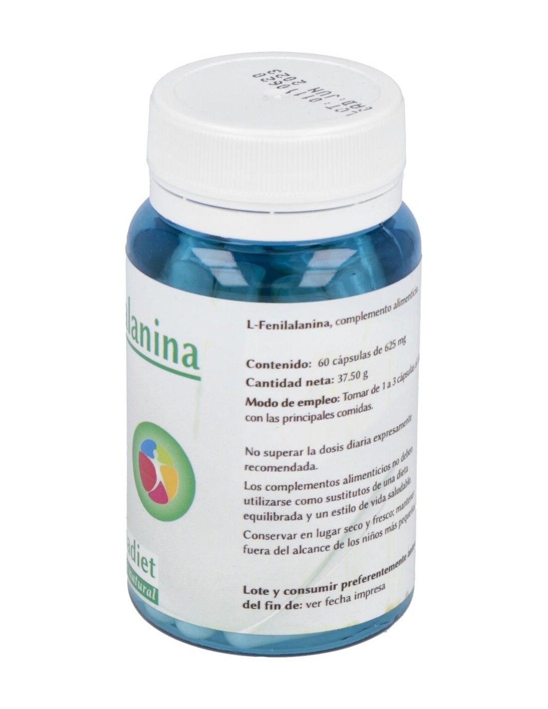Montstar Fenilalanina 50caps complemento alimenticio basado en l-fenilalanina que ayuda a mejorar las situaciones de estrés e interviene en la formación de anticuerpos y hormonas. tiene propiedades relajantes, alivia dolores musculares, ayuda a controlar el apetito y a la agudeza mental. útil en dietas que carecen de proteínas. es un aminoácido esencial que interviene en la transmisión de los impulsos nerviosos del cerebro humano y otras partes del sistema nervioso. actúa como antiinflamatorio y analgésico, ayudando en el dolor de cabeza o dolor corporal.