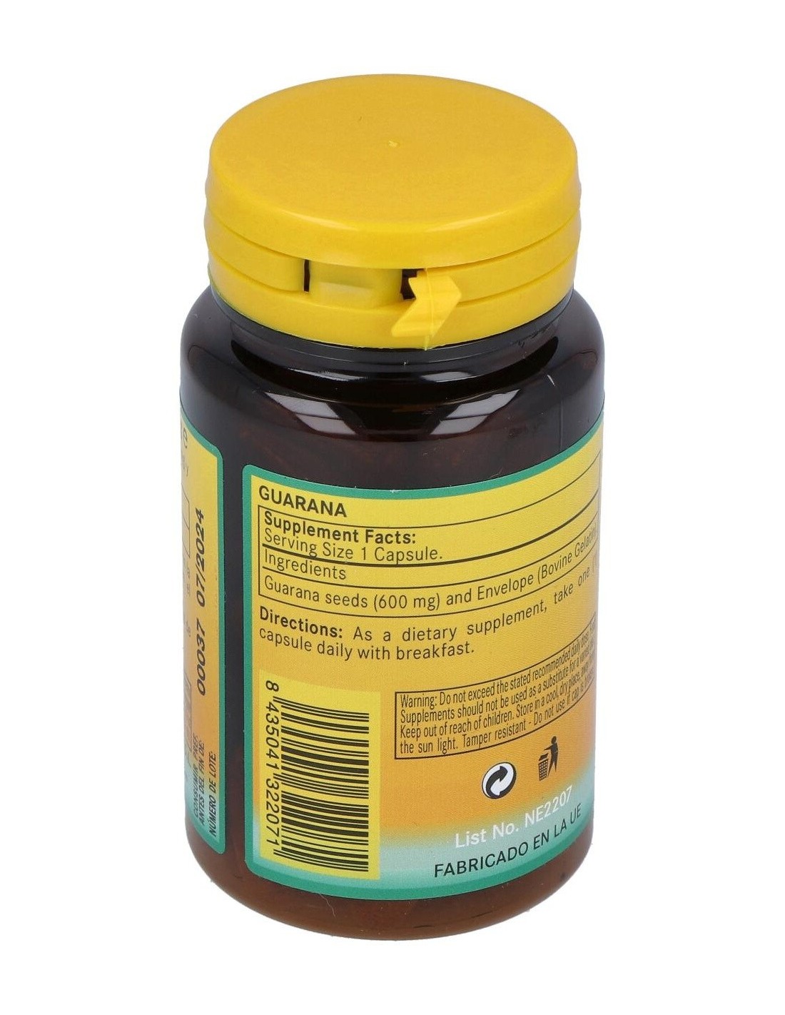 Suplemento alimenticio basado en extracto de Guaraná (Paullinia cupana) en formato de cápsulas de gelatina dura. El producto facilita diversos beneficios: Disminución de la sensación de fatiga y cansancio, promueve la circulación y el riego sanguíneo, ayudar a fortalecer las funciones cognitivas, siendo ideal para estimular la memoria, la concentración, etc. Las ricas propiedades del extracto resultan ideales para el organismo ya que promueve y estimula el correcto funcionamiento de la circulación y el cerebro. Advertencia de usos: No recomendado en mujeres embarazadas o bien en periodo de lactancia.