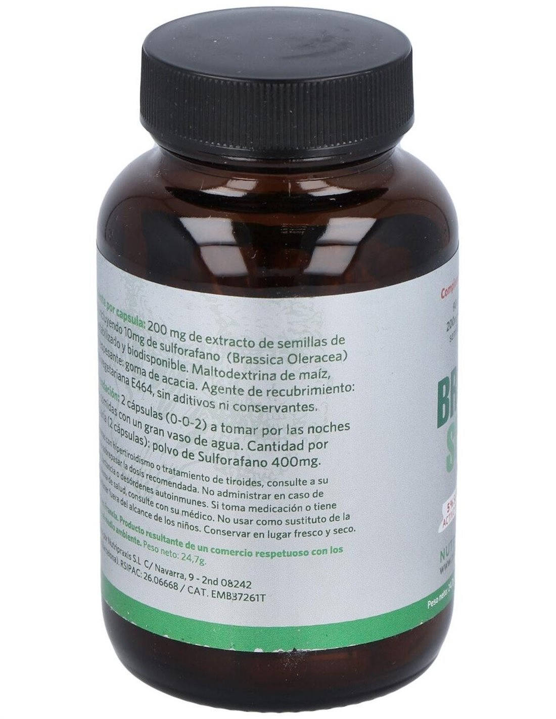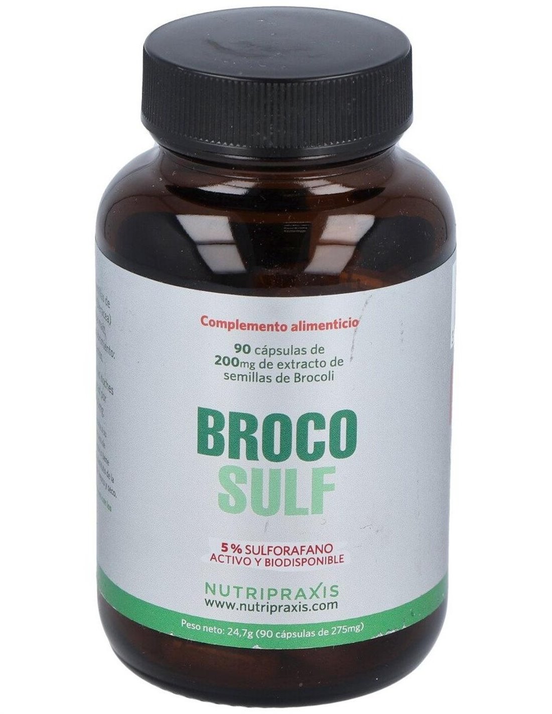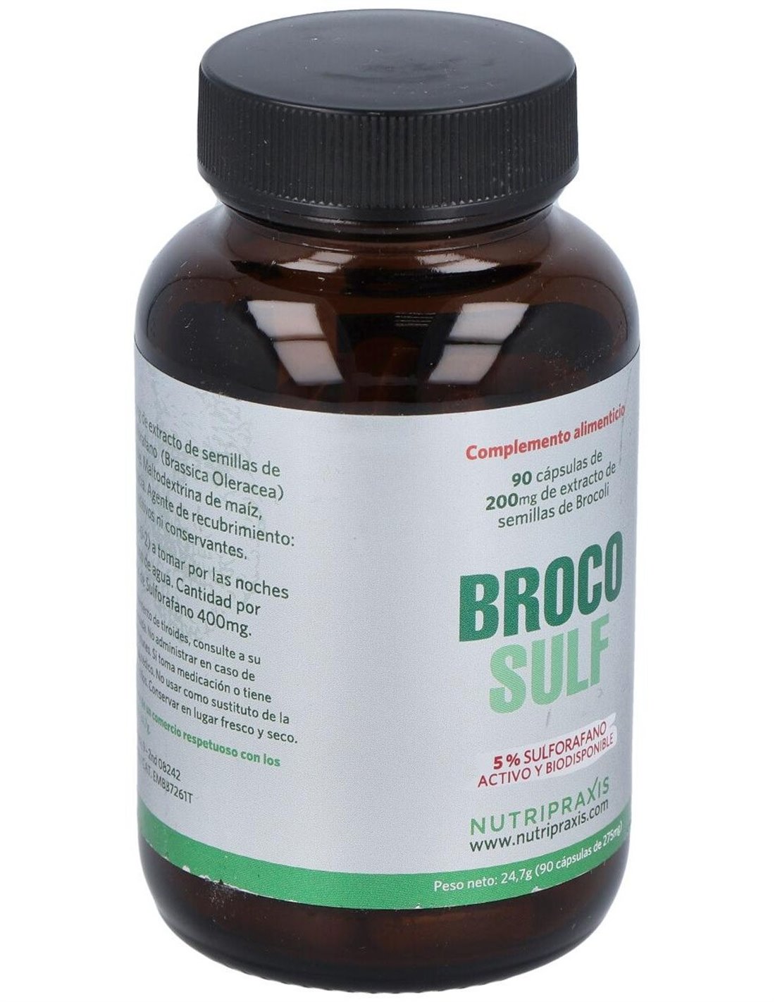 La producción de Brocosulf® cumple con la normativa europea. Las diversas etapas del proceso de producción están sujetas a especificaciones muy precisas. Se realizan verificaciones puntuales durante todo el proceso de producción para garantizar que se mantenga la calidad y la eficacia del producto. Las auditorías de producción también se llevan a cabo regularmente, mientras que la trazabilidad está garantizada desde la etapa de semilla hasta la distribución Brocosulf®Brocosulf® está hecho de semillas de brócoli. Las semillas se cosechan y se eligen por su calidad y contenido de sulforafano. Se garantiza que las semillas estarán libres de transgénicos y se pueden rastrear desde el momento en que se siembran hasta la cosecha.Composición activa por cápsula:200 mg de de extracto de semillas de brócoli (10 mg de sulforafano).Ingredientes:Extracto de semillas de brócoli de los cuales 10 mg son de sulforafano (Brassica Oleracea) libre, estabilizado y biodisponible. Maltodextrina de maíz, Agente espesante: goma de acacia, agente de recubrimiento: gelatina vegetariana E464.Modo de empleo:Tomar 2 cápsulas al día, una por la mañana y otra por la noche antes de comer.Presentación:Envase de 90 cápsulas.Recomendaciones y advertencias:Producto vegano. No contiene gluten ni azúcares añadidos.