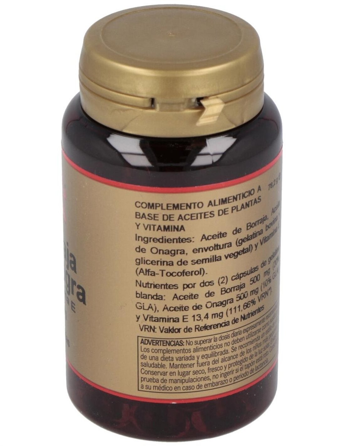 Complemento alimenticio elaborado a base de vitamina E y aceites de borraja y onagra. Fórmula rica en ácidos grasos esenciales. Favorecen el correcto mantenimiento y equilibrio fisiológico de la piel. A la sinergia de estos aceites se le atribuyen propiedades de regulación hormonal. Indicado para adultos.