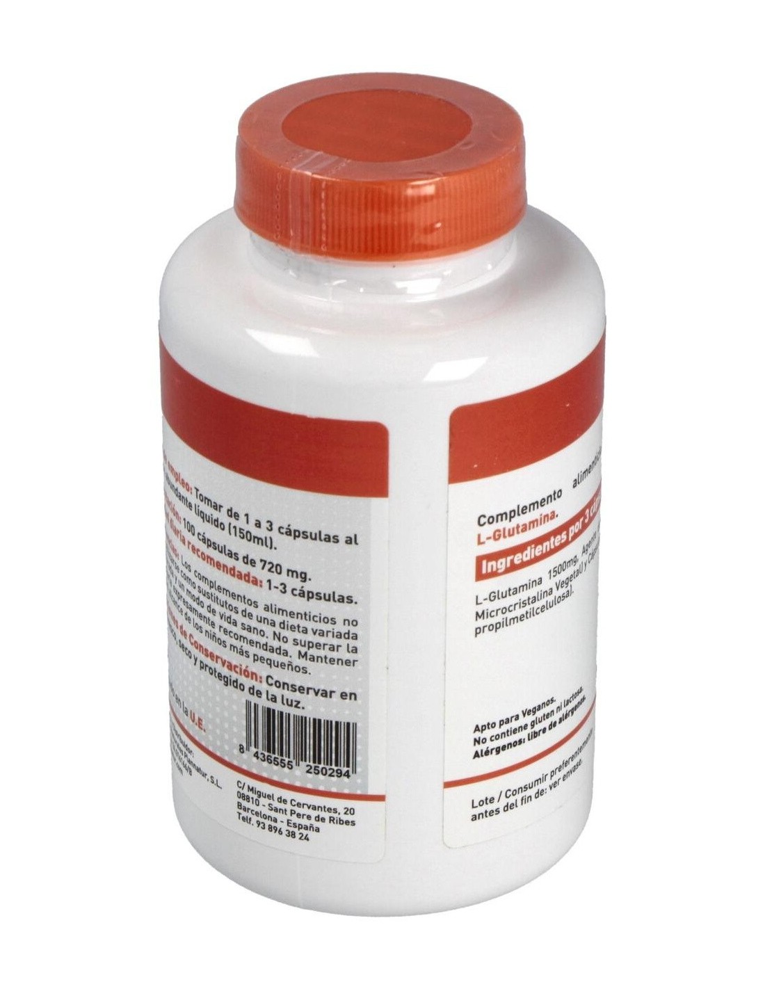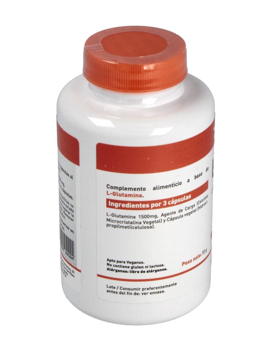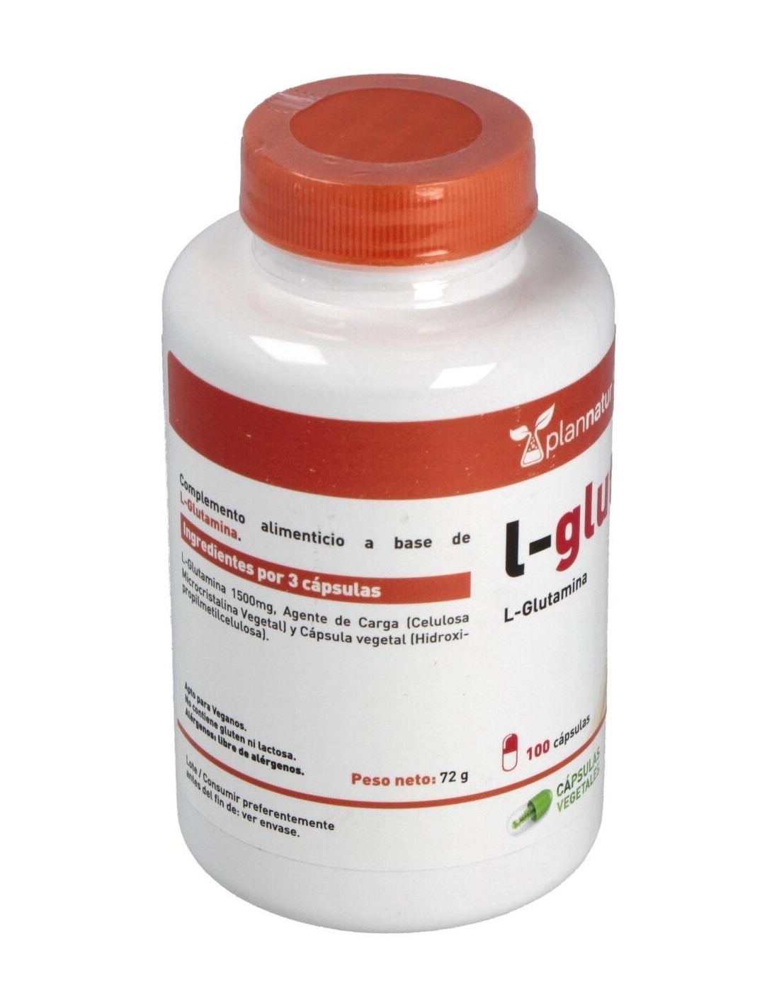 Complemento alimenticio en forma de cápsulas vegetales, elaborado a base de L-glutamina, un aminoácido no esencial que contribuye a mejorar el rendimiento deportivo y favorece una rápida recuperación muscular. Además es muy útil para manejar situaciones de estrés.
