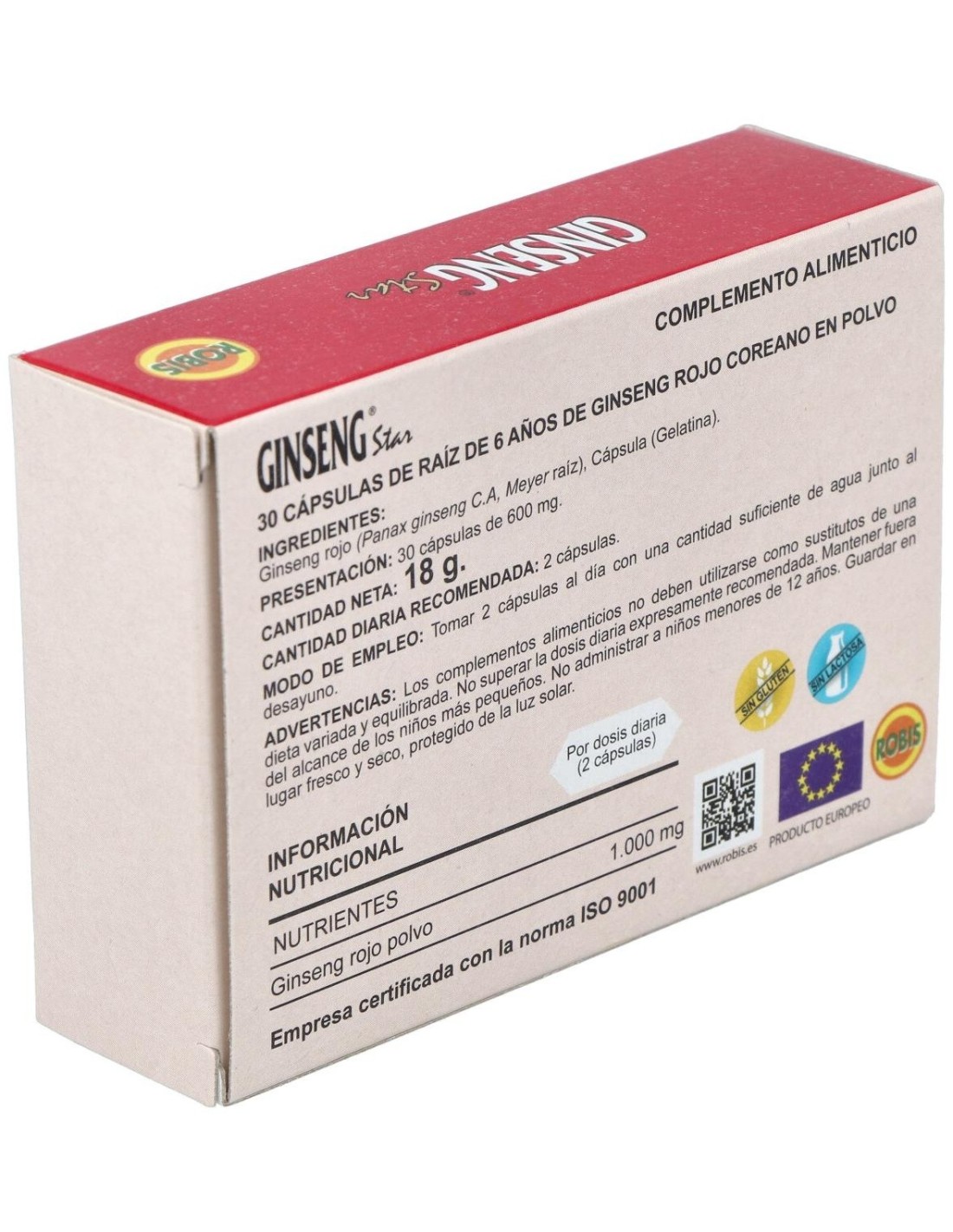 El Ginseng Rojo Star 30Cap de Robis es un suplemento natural para adultos que busca apoyar el bienestar general mediante extracto concentrado de ginseng rojo en cápsulas fáciles de consumir.