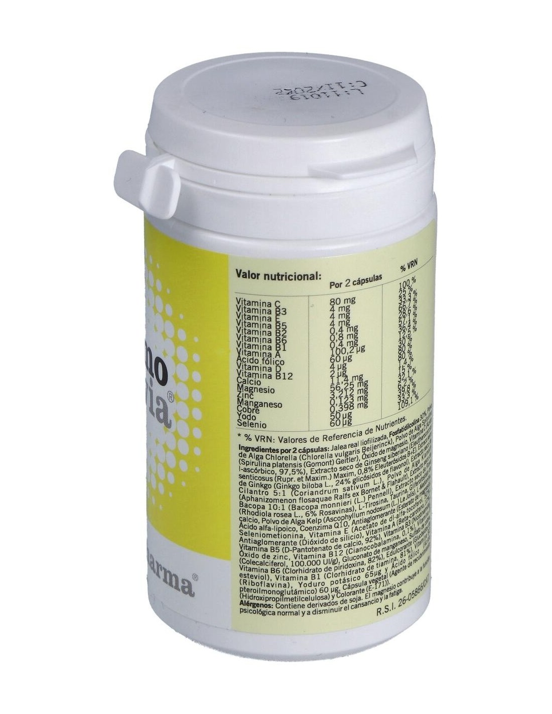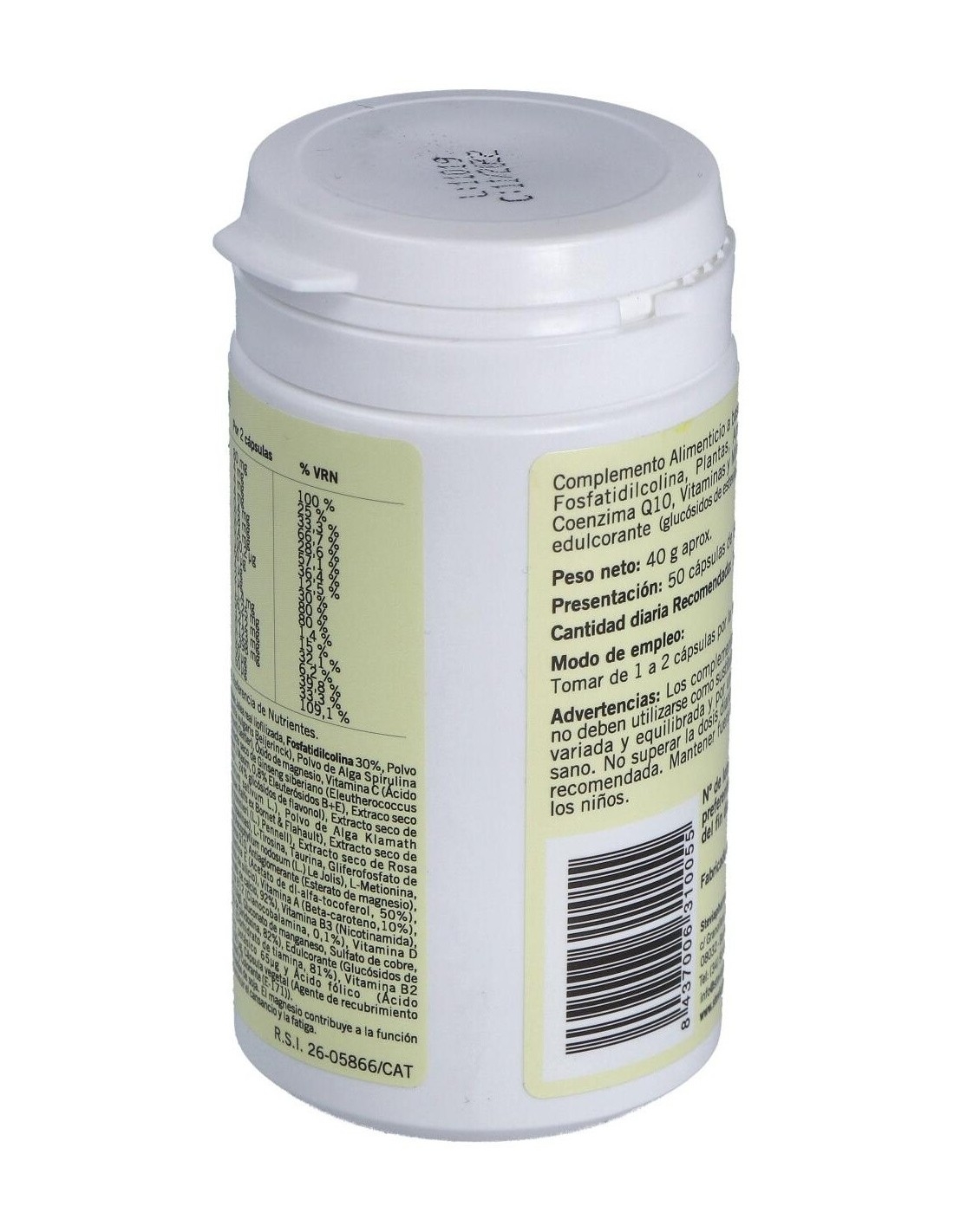 Suplemento alimenticio que ayuda a actuar sobre el organismo para reforzar las funciones cerebrales. Contiene extractos vegetales y nutrientes varios, sin lactosa.Formato de 50 cápsulas.