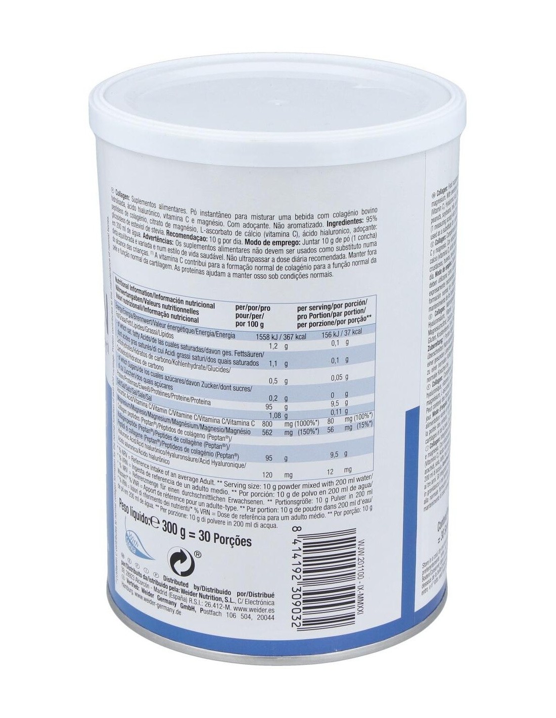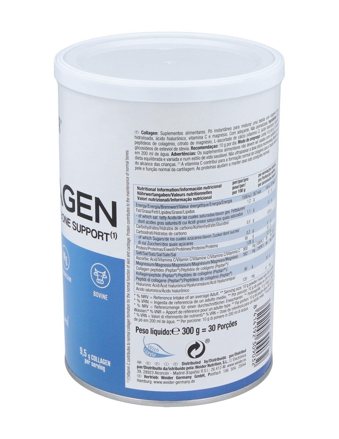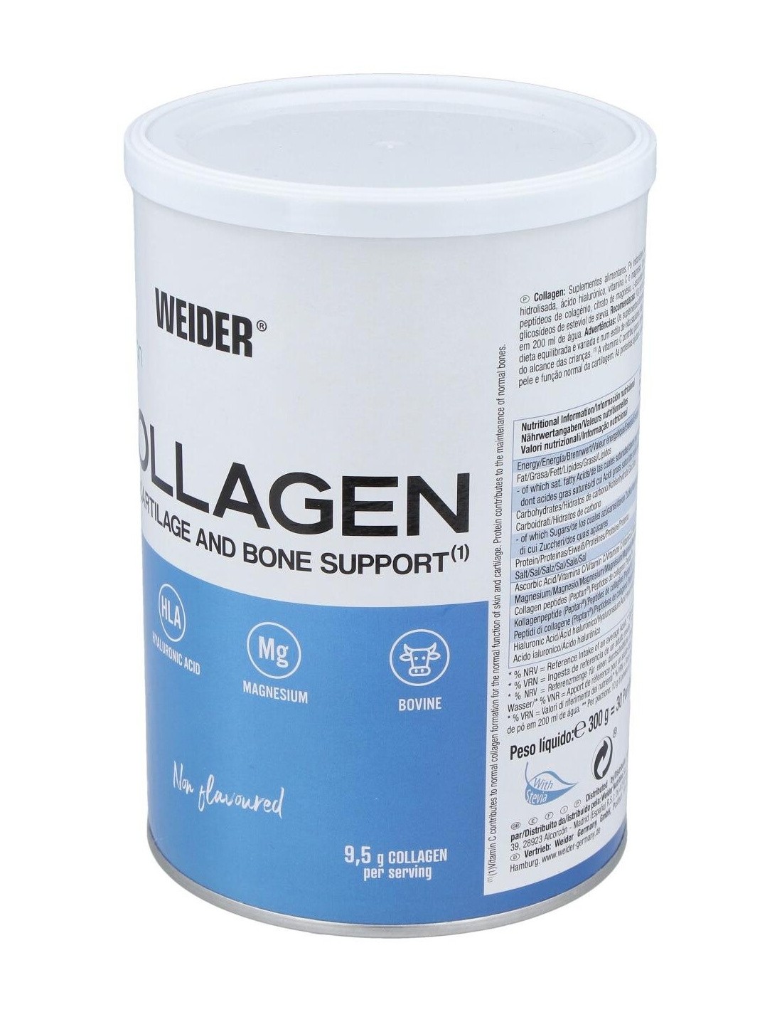 Weider Collagen 300g es un complemento alimenticio diseñado para proteger la piel del envejecimiento y el paso del tiempo. Es bajo en grasas y azúcares y perfecto para cualquier edad, se presenta en sabor neutro y está endulzado con educolorante sin calorías procedente de la hoja de stevia.