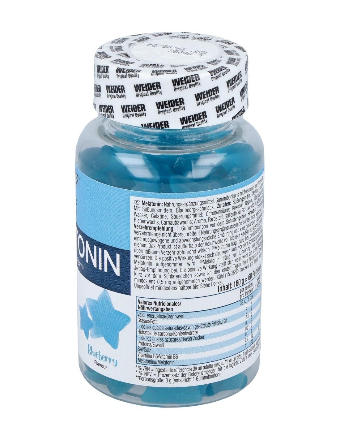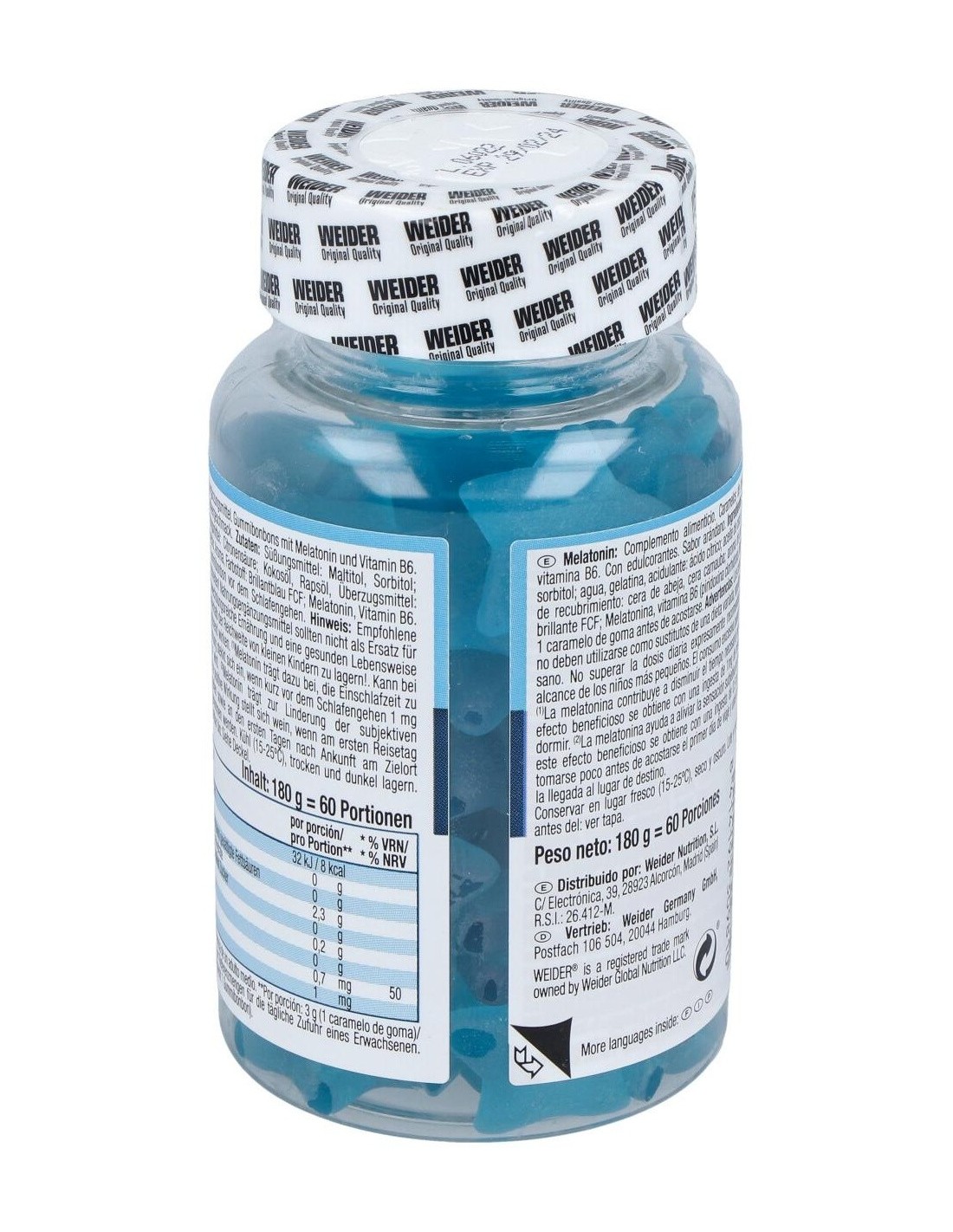 Weider Gummy Melatonina 60Gummies de Weider es un suplemento en gomitas diseñado para personas que buscan apoyar su descanso nocturno, facilitando la ingesta de melatonina en una presentación práctica y fácil de consumir.