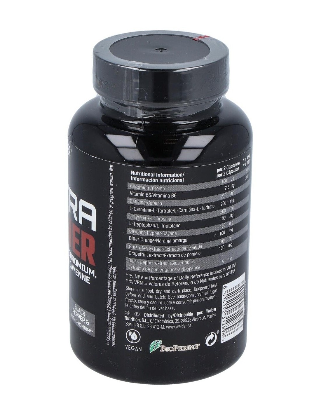 El Weider Ultra Burner 120Cap. es un suplemento para personas activas que busca apoyar el metabolismo energético, formulado con ingredientes seleccionados para contribuir al control del peso.