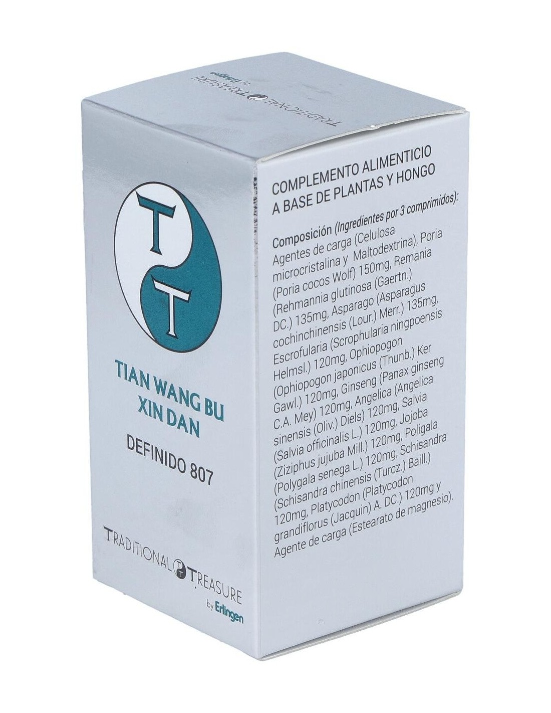 Erlingen Definido 807 Tian Wang Bu Xin Dan 60comp son unos comprimidos que contribuyen al buen funcionamiento cognitivo. Además, se recomienda en casos de insomnio, ya que favorece el correcto rendimiento físico y mental en épocas de estrés.