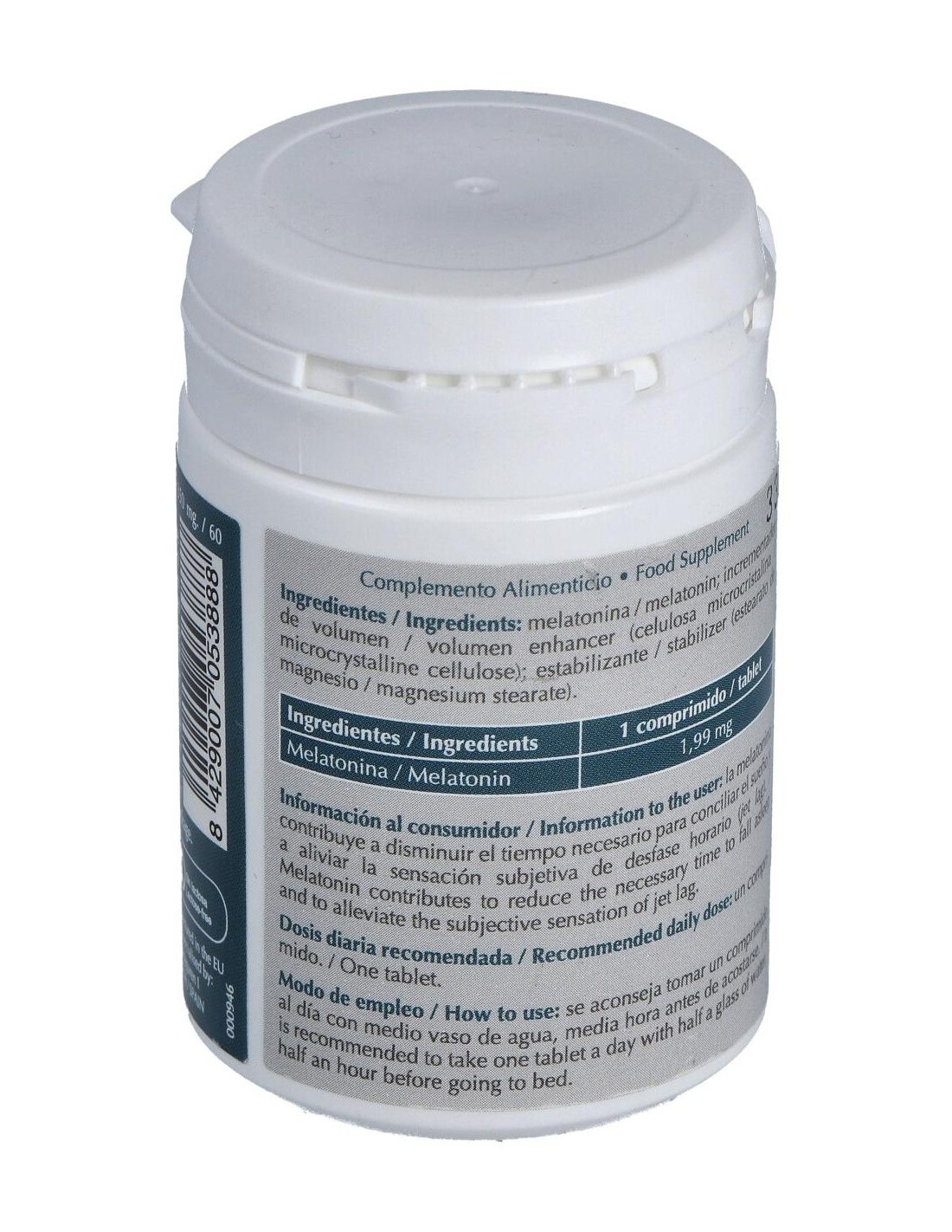 - Cada comprimido aporta 1,99 mg de melatonina, facilitando su ingesta y dosificación precisa.
