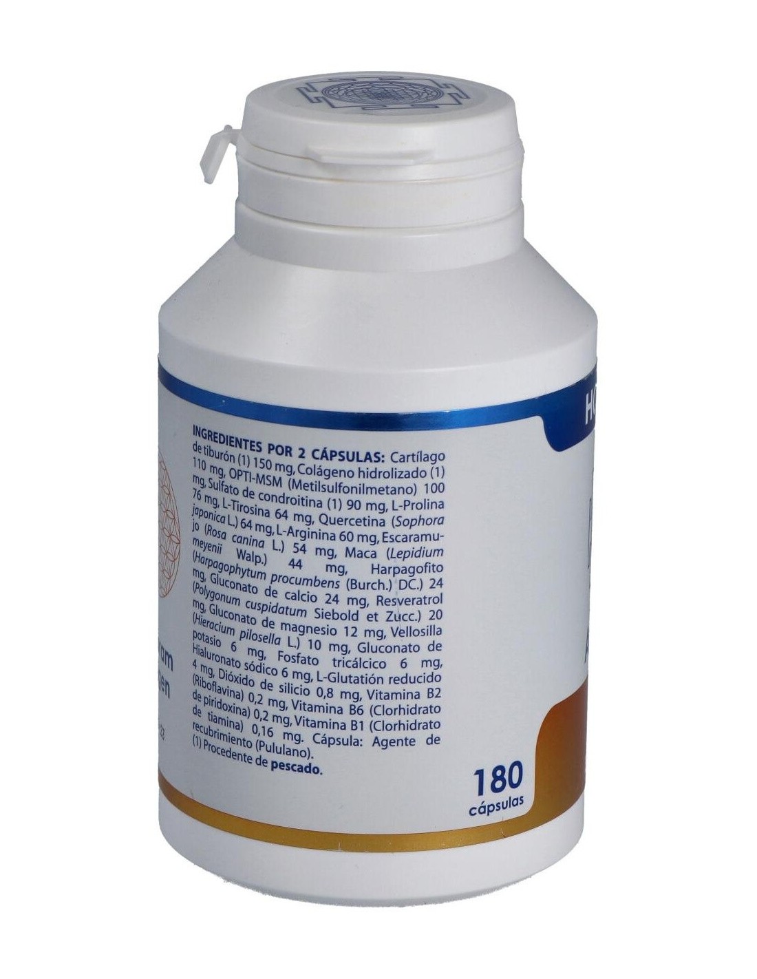 Grupo I. Sustrato activado de micronutrientes articulares: Cartílago de tiburón (8-12% glucosamina sulfato, 14-20% condroitín sulfato) 75 mg, Colágeno hidrolizado de pescado (PeptanTM F 5000 HD) 55 mg, OptiMSM (99.8% metilsulfonilmetano) 50 mg, Condroitín sulfato (tiburón, 90%) 45 mg, Hialuronato sódico 3 mg.