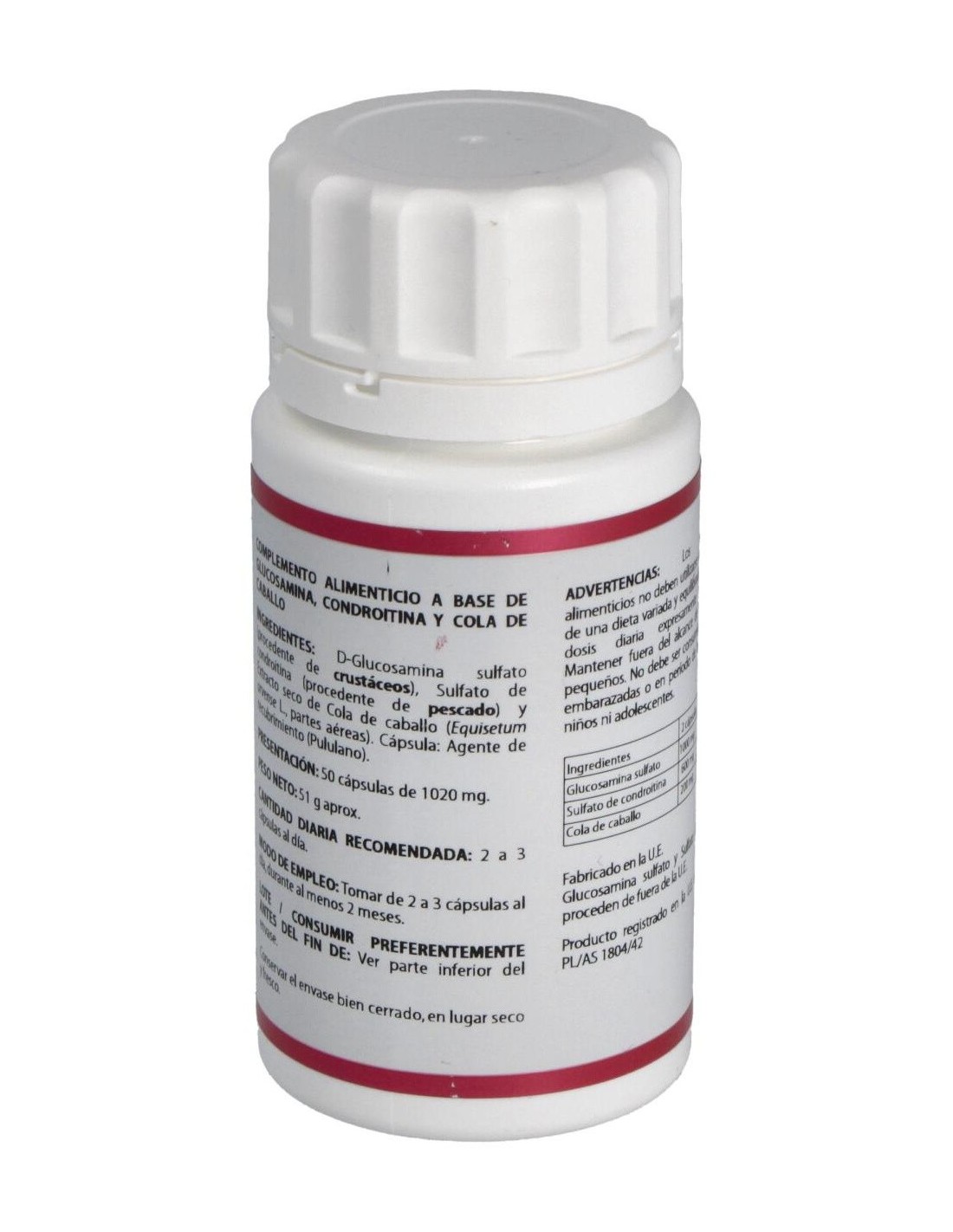 Glucosamina: Es un amino-azúcar natural fabricado por el organismo y que se encuentra en altas concentraciones en las estructuras de las articulaciones. Su función fisiológica es estimular la fabricación de glicosaminoglicanos. Estudios llevados a cabo en humanos sobre la absorción, distribución y eliminación de varias formas disponibles de glucosamina muestran que el sulfato de glucosamina es la mejor, con un grado de absorción del 98% por vía oral. Una vez absorbida, va principalmente a los tejidos de las articulaciones, donde se incorpora en la matriz del tejido conectivo del cartílago, ligamentos y tendones. Además, la glucosamina favorece la incorporación de azufre en el cartílago.