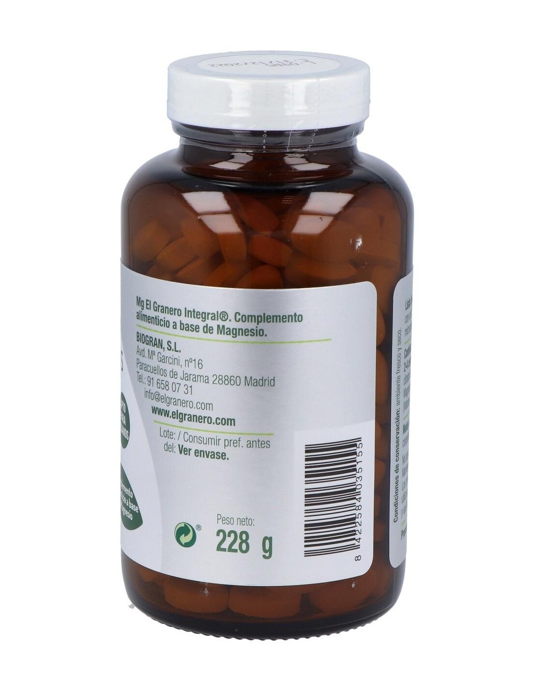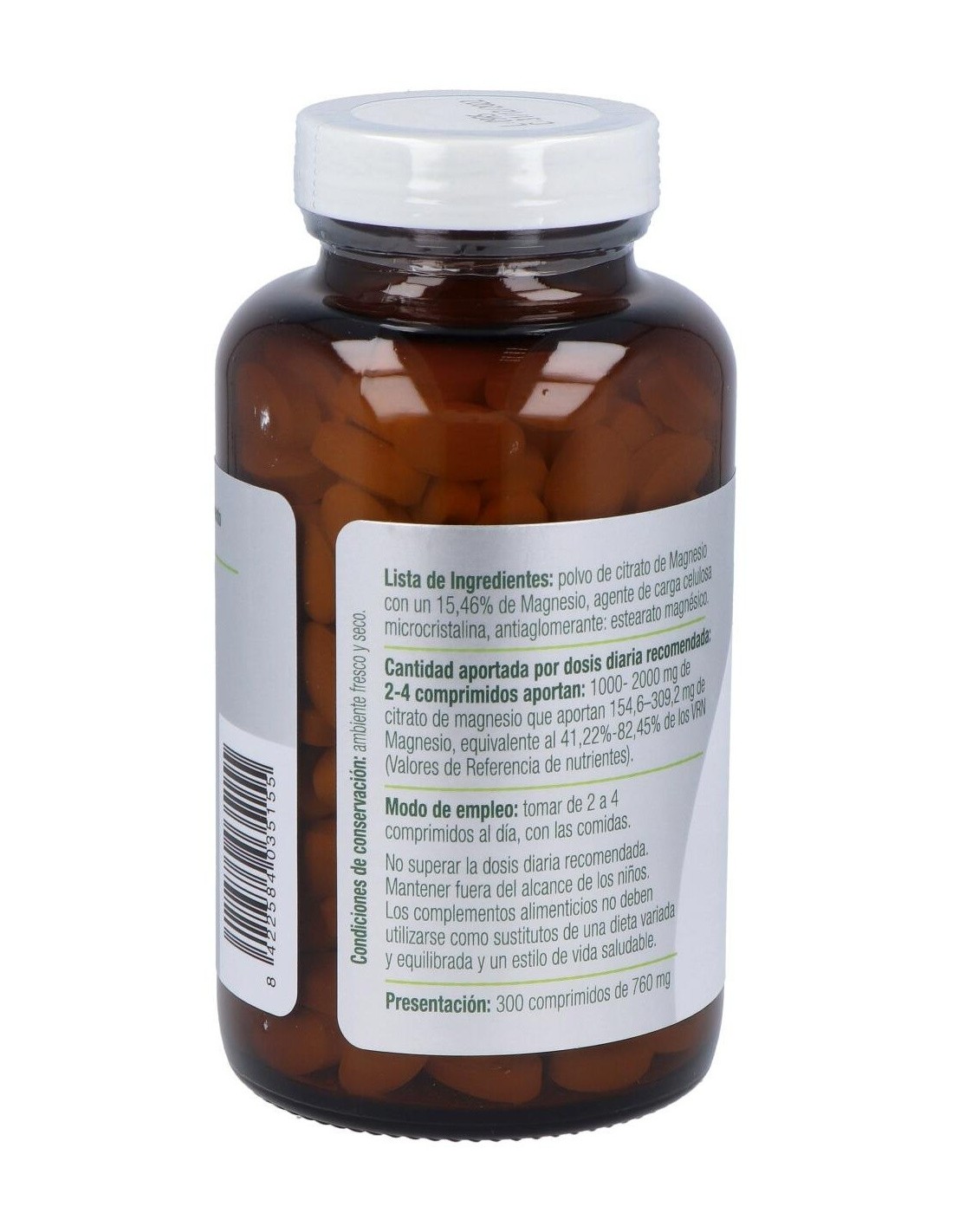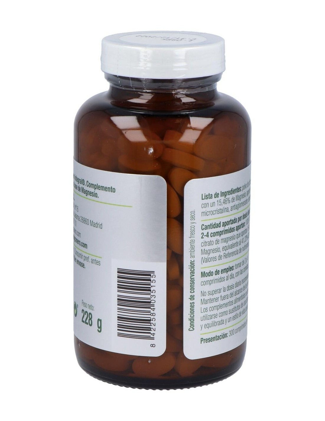 El magnesio es un mineral muy importante en nuestro organismo que actúa como un detonante para poner en marcha muchas de las reacciones de éste. Participa en la construcción de nuestro esqueleto. En la época de la menopausia es indispensable para mentener la densidad ósea. Regula la energía además de hacer llegar la sangre al músculo, la entrada y salida de calcio en las células del sistema nervioso, etc. El citrato es una de las formas más asimilables de magnesio. Su suplementación se aconseja en astenia primaveral, síndrome premenstrual, menopausia y en la época de crecimiento. Su carencia puede provacar estados de ansiedad, apatía, debilidad muscular, cansancio crónico, sobreexcitabilidad de los nervios provocando espasmos y calambres musculares. Su deficiencia provoca hiperexcitabilidad neuromuscular. Propiedades del magnesioActúa ayudando a la función de los órganos vitales manteniendo la salud de los nervios y glándulas contribuyendo a la estabilidad emocional, además también ayuda a fijar el calcio y el fósforo en huesos y dientes, regula la absorción del calcio y el potasio manteniéndolos en equilibrio con respecto a otros electrolitos, previene la formación de cálculos renales y la entrada y depósto de calcio en músculos, arterias y células cardiacas. Además interviene en el equilibrio hormonal disminuyendo la intensidad de los dolores premenstruales, favorece el sueño y la relajación, controla la flora intestinal. A su vez juega un papel importante en la síntesis de proteínas, lípidos, carbohidratos y otros nutrientes. Al aumentar la solubilidad del calcio en orina previene la formación de cálculos renales. Ingredientes por comprimido:500 mg de citrato de magnesio (77,3 mg de magnesio).. Modo de empleo:Tomar de 2 a 4 comprimidos al día. Presentación:Bote de 300 comprimidos. Recomendaciones y advertencias:Apto para veganos. El magnesio no debe tomarse con tetraciclinas ni junto a tratamiento oral de la diabetes.