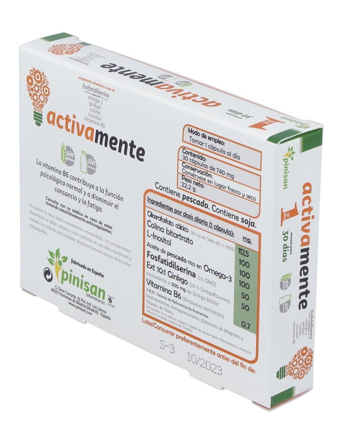 La fórmula de este complemento alimenticio combina colina, inositol, omega 3, ginkgo, fosfatidilserina, calcio y vitamina B6.