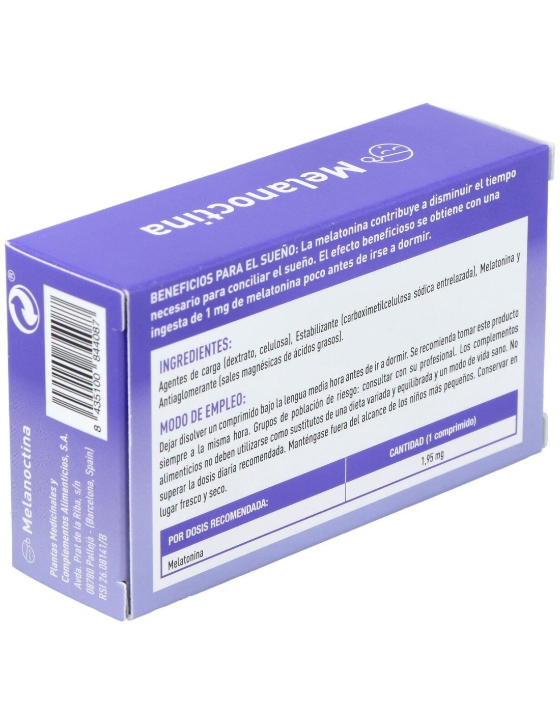 Uno de los remedio naturales más popularescontra el insomnio en la actualidad es la melatonina, una hormona producida en la glándula pineal que se encarga, entre otras funciones, de regular el sueño. El paso de los años, el estrés y la ansiedad, una mala alimentación y desajustes en los horarios del sueño hacen disminuir los niveles de melatonina en nuestro organismo. Cuando esto sucede nuestro reloj biológico se desajusta y aparece una importante dificultad para conciliar el sueño y que este sea prolongado durante la noche. Una dosis de 1 mg de melatonina una hora antes de acostarse es suficiente para inducir al sueño de forma natural y que este sea más duradero y de mayor calidad, poniendo remedio al insomnio ocasional y sus consecuencias. También es muy útil para aquellas personas que trabajan a turnos y ven modificados semanalmente sus horarios de sueño y ha demostrado una notable eficacia en la adaptación del organismo a diferentes usos horarios, el temido jet-lag. Composición activa por comprimido:1,95 mg de melatonina.Ingredientes:Agentes de carga (dextrato, celulosa), Estabilizante (carboximetilcelulosa sódica entrelazada), Melatonina y Antiaglomerante (sales magnésicas de ácidos grasos). Modo de empleo:Dejar disolver un comprimido bajo la lengua media hora antes de ir a dormir. Se recomienda tomar este producto siempre a la misma hora. Presentación:Envase de 60 comprimidos sublinguales.