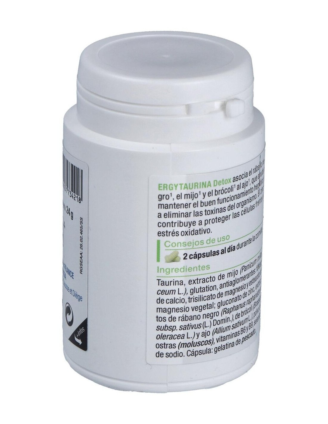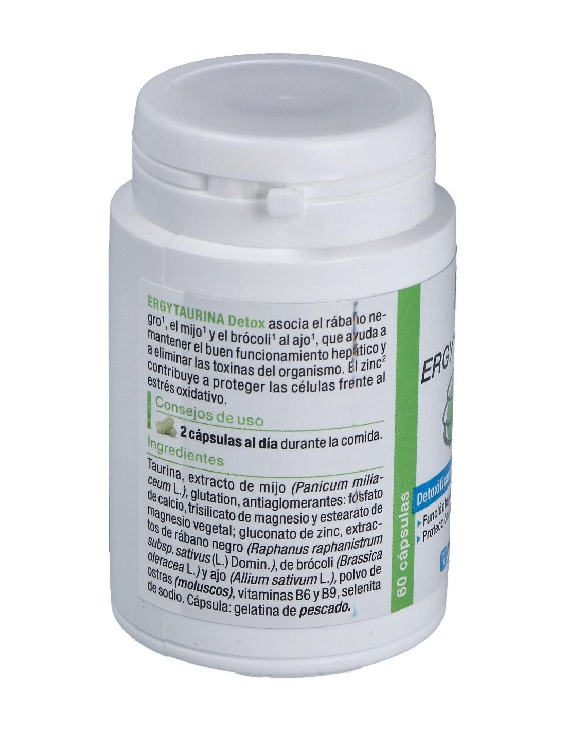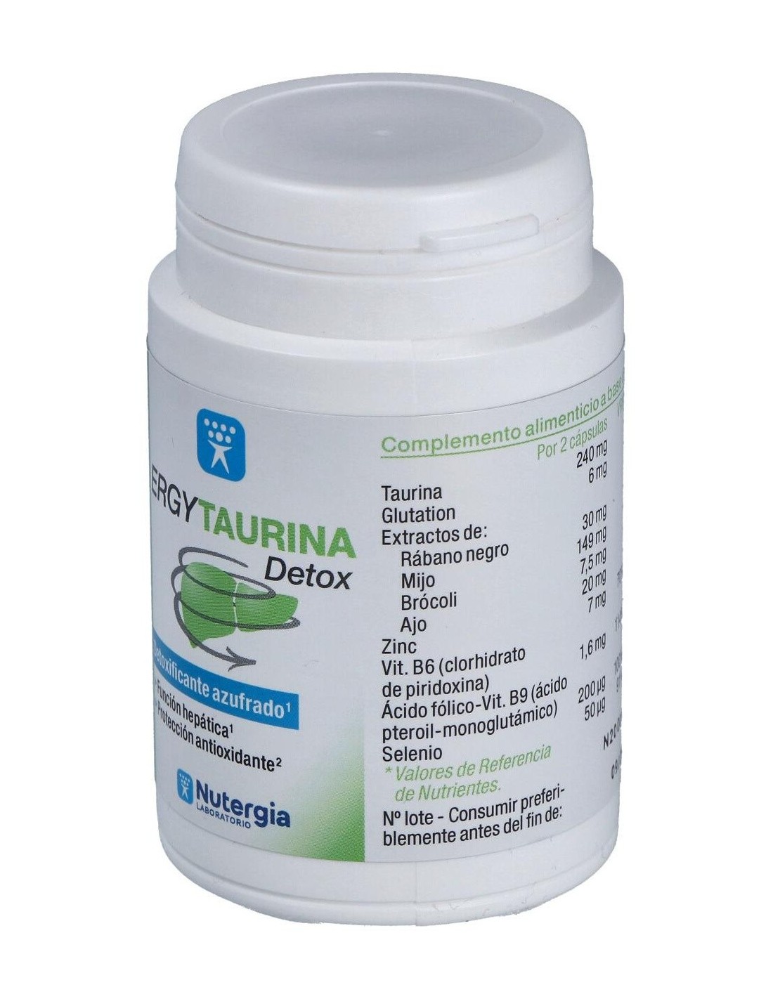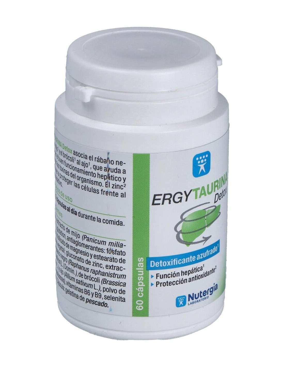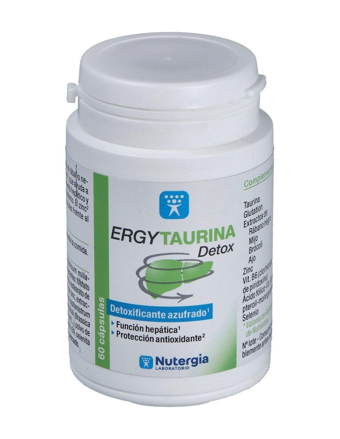 Ergytaurina Detox 60Cap. de Nutergia es un suplemento para personas que buscan apoyar la función hepática y la eliminación de toxinas, formulado con taurina para favorecer los procesos naturales de desintoxicación.
