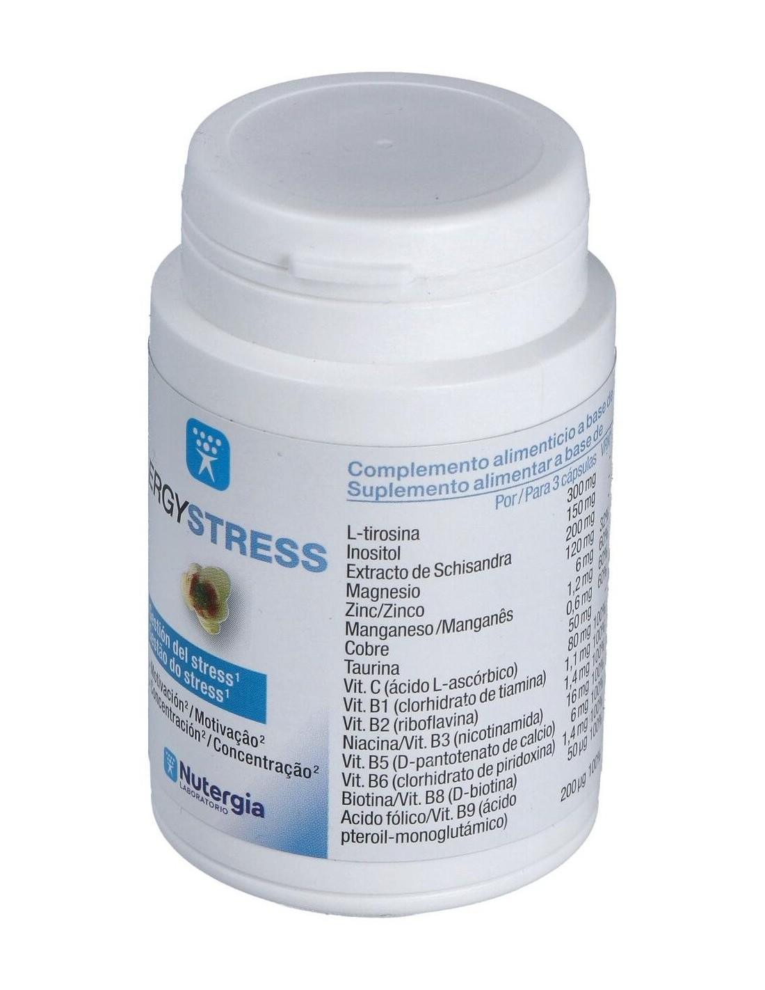Ergystress 60Cap. de Nutergia es un complemento alimenticio diseñado para personas que buscan apoyar su bienestar diario en situaciones de tensión o estrés. Su formulación está orientada a contribuir al equilibrio emocional y a la relajación natural del organismo.