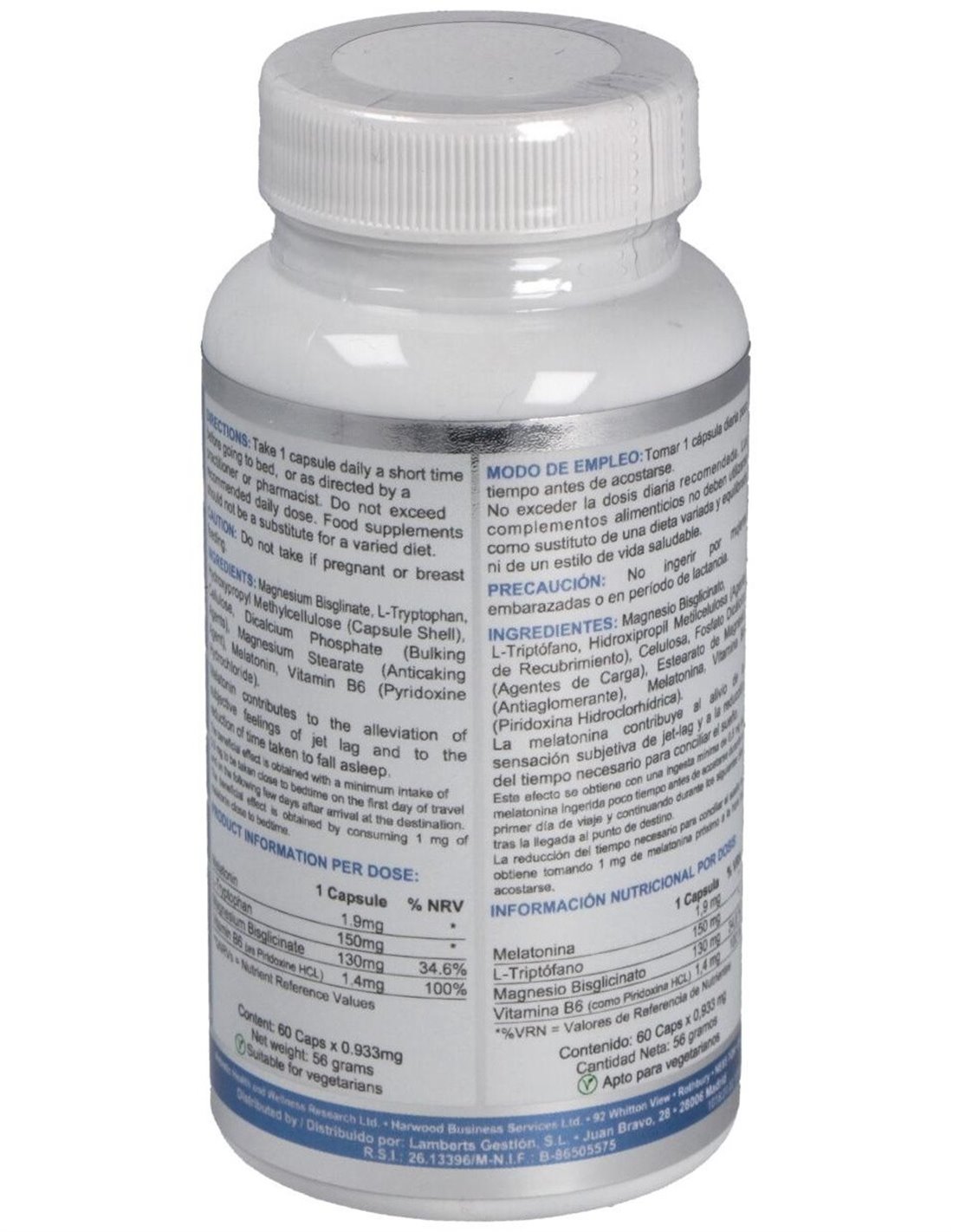 - Cada cápsula contiene 1,9 mg de melatonina, un compuesto que contribuye a la regulación del ciclo circadiano.