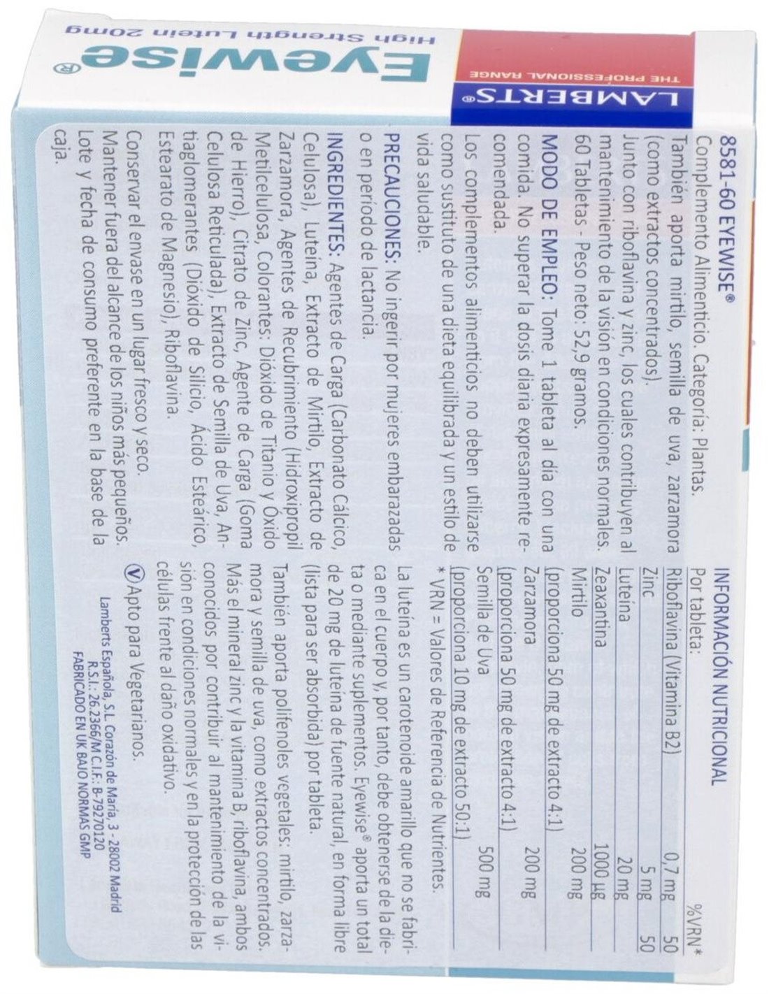 Eyewise® (Luteína, Zeaxantina,Plantas, Vit, Min) 60 Tabs. de Lamberts
