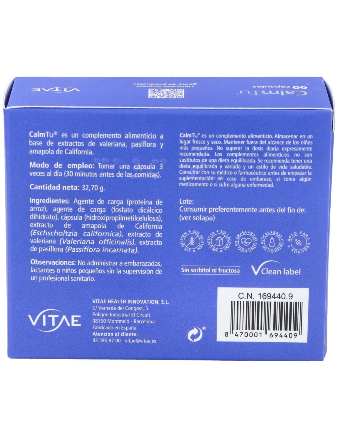 Calm Tu 60 cápsulas de Vitae