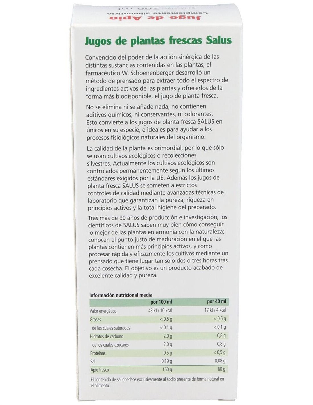 Jugo De Apio 200Ml. Schoenenberger de Salus