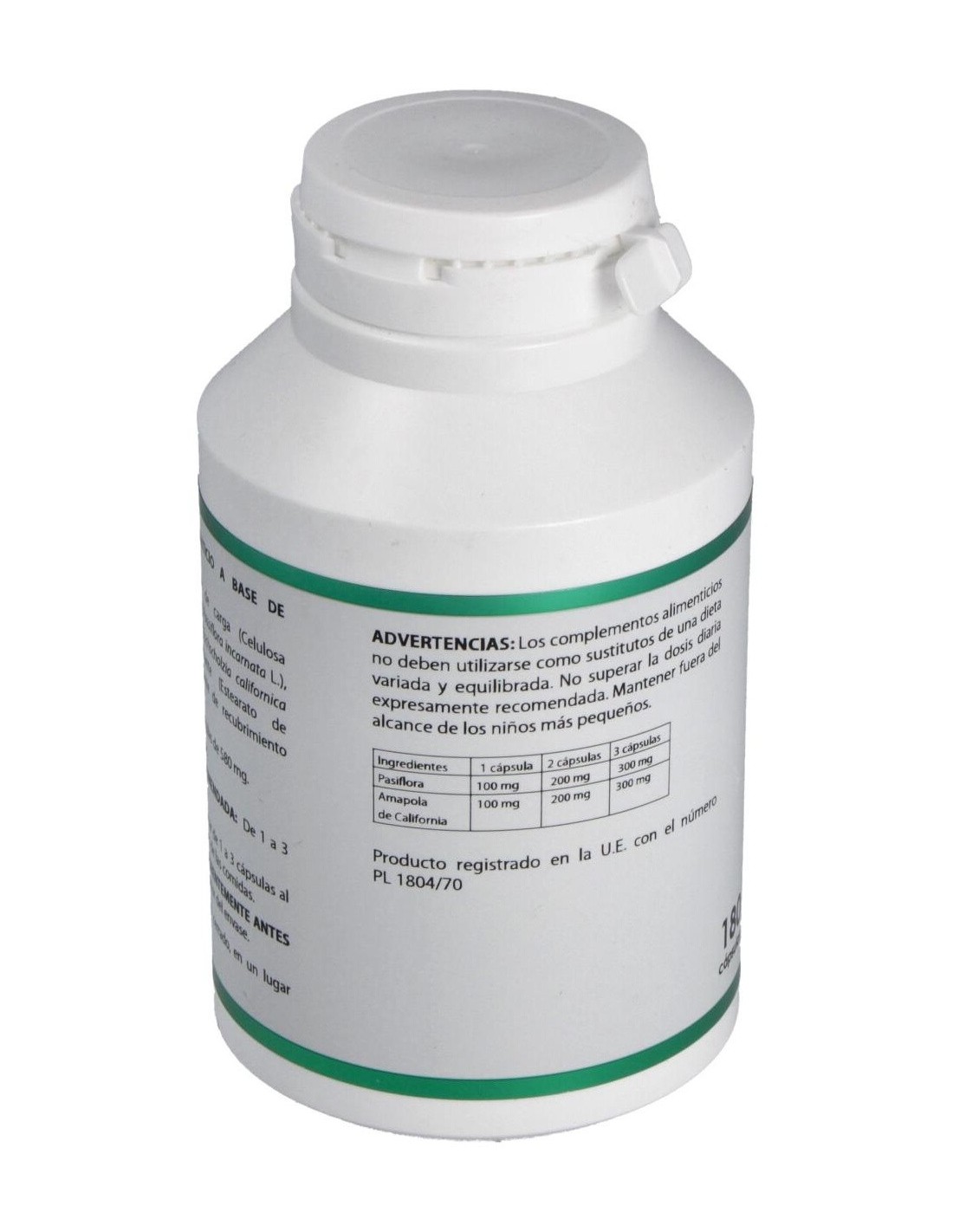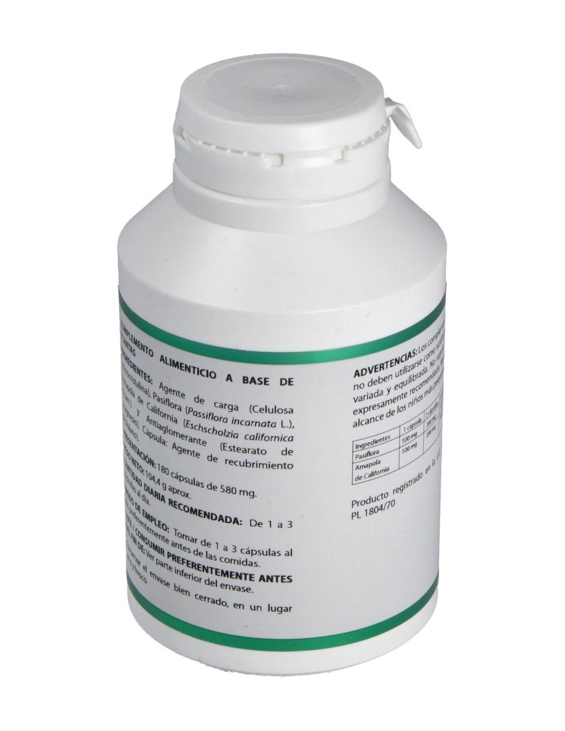 Complemento alimenticio a base de plantas. Favorece la relajación del sistema nervioso en casos de ansiedad, trastornos del sueño, etc. Apto para vegetarianos, diabéticos y pacientes con dietas restrictivas.