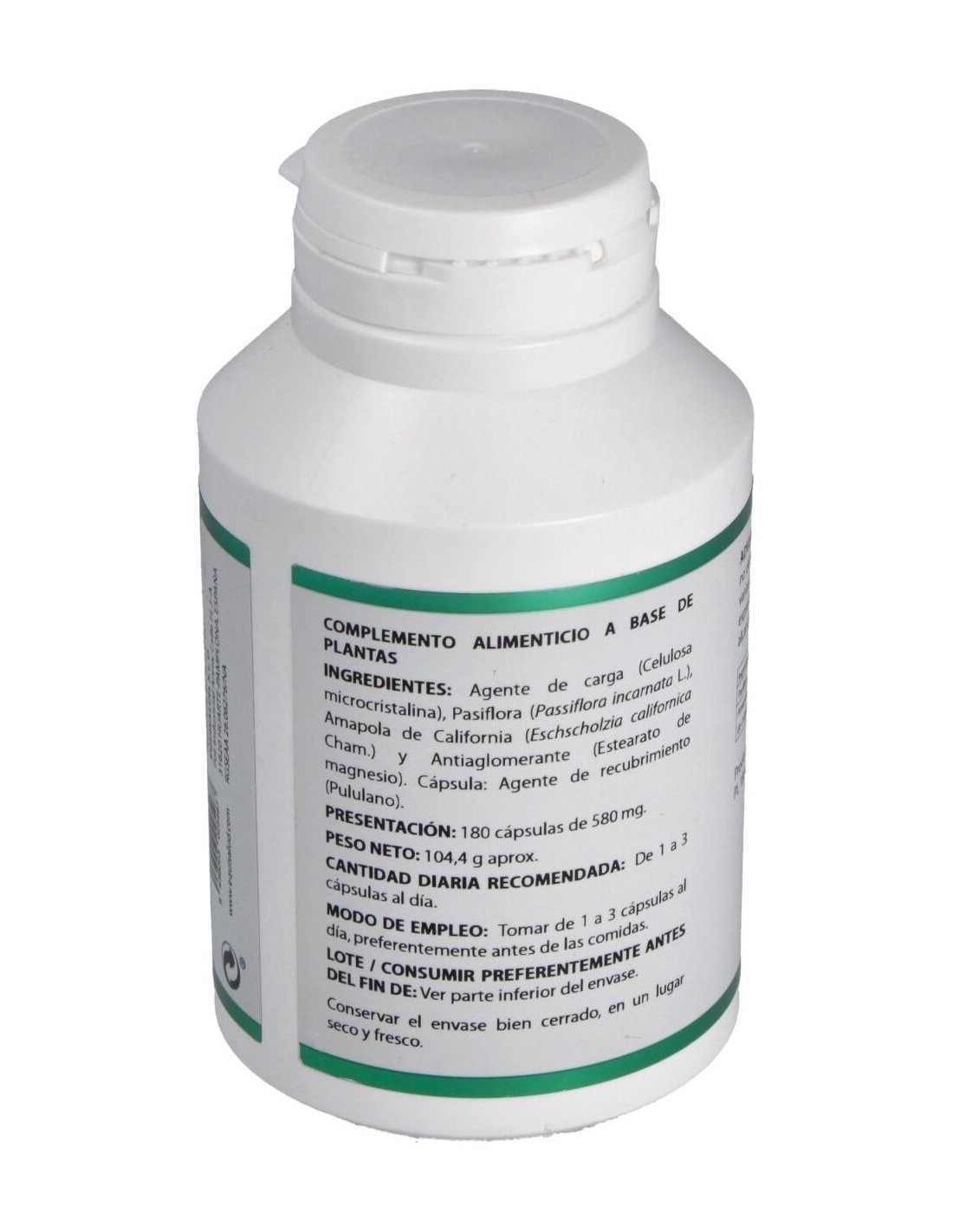 Pasiflora, Eschscholzia, Amapola de California, Celulosa microcristalina c.s. Estearato de magnesio c.s. Envoltura de polisacárido de origen vegetal (pululano)