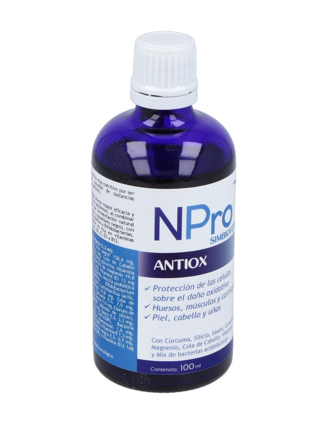 El Npro Antiox 100Ml. es un suplemento antioxidante diseñado para personas que buscan apoyar su bienestar diario, formulado con ingredientes que contribuyen a la protección celular.
