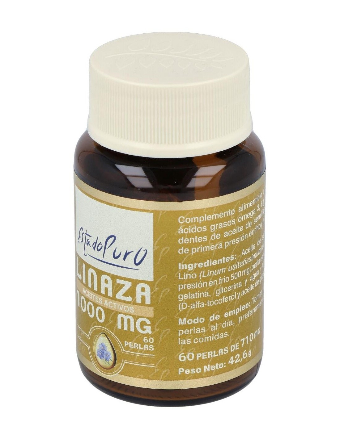 Contiene aceite de semillas de Lino (Linum usitatissimum) prensado en frío concentrado en los ácidos grasos esenciales Omega 3, 6 y 9, estandarizado al 11% en ácido alfa-linolénico, 50% en ácido alfa-linolénico y 11% en ácido linoleico.