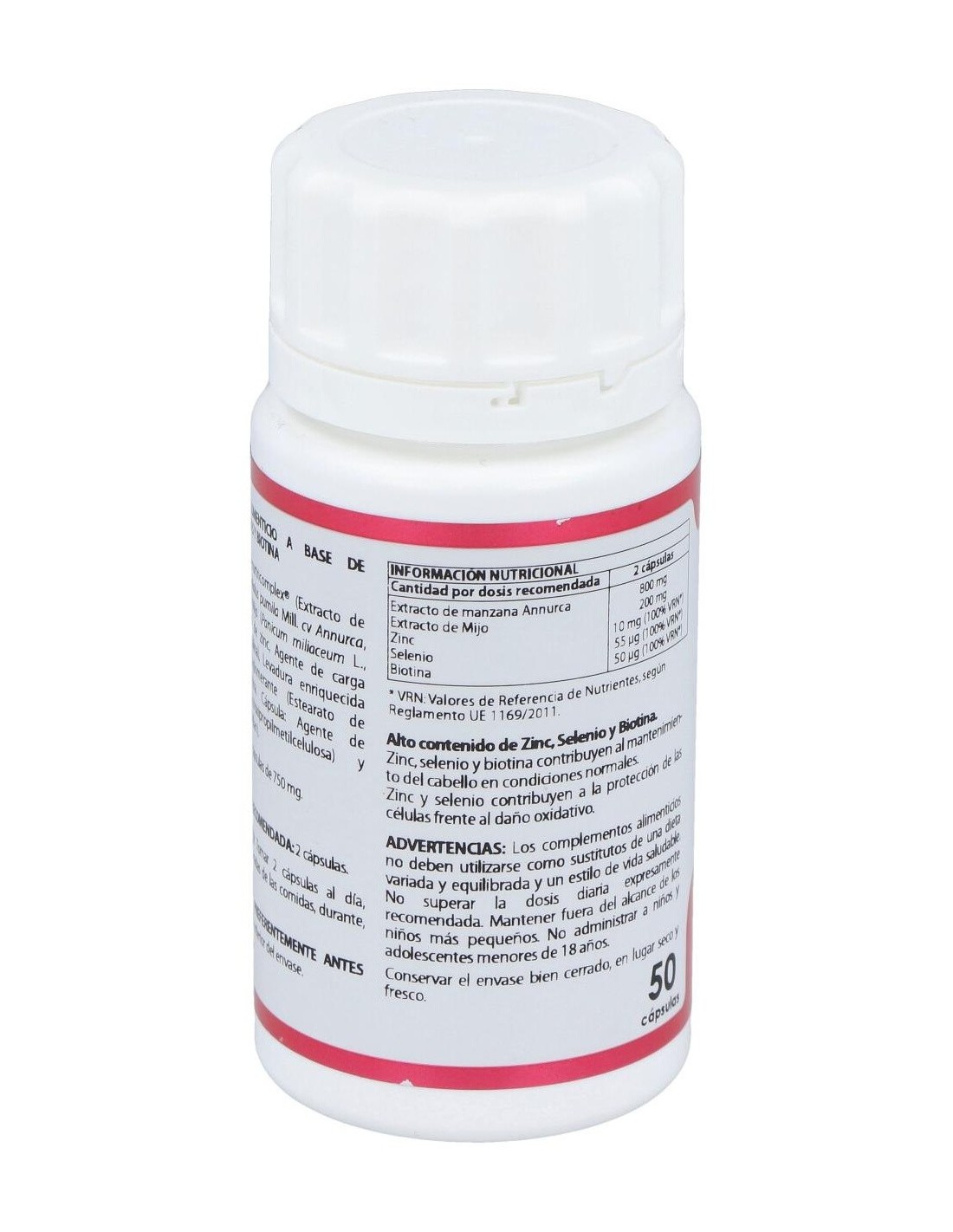 Suplemento a base de plantas, minerales y biotina. La biotina contribuye al mantenimiento del cabello en condiciones normales.