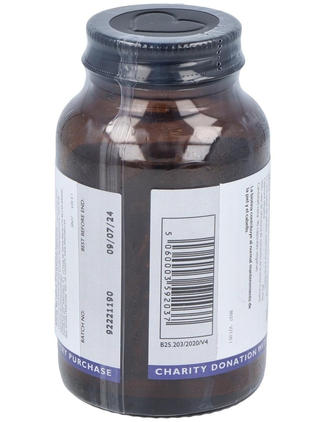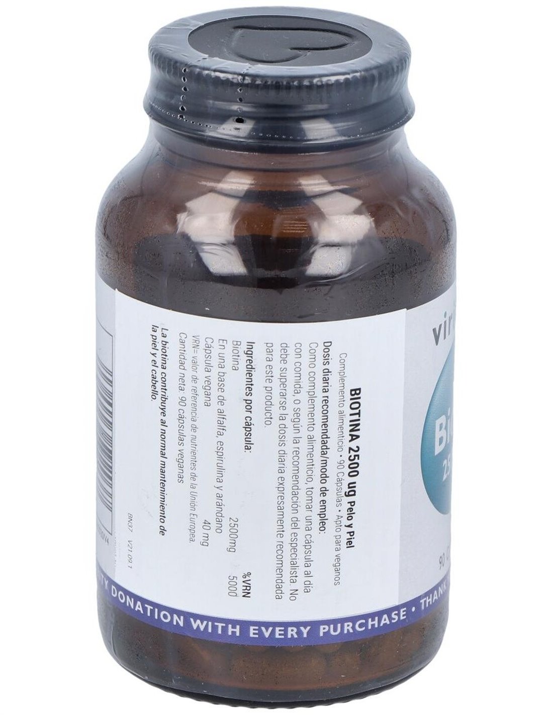 La biotina contribuye al normal mantenimiento de la piel y el cabello. Producto vegano y kosher.