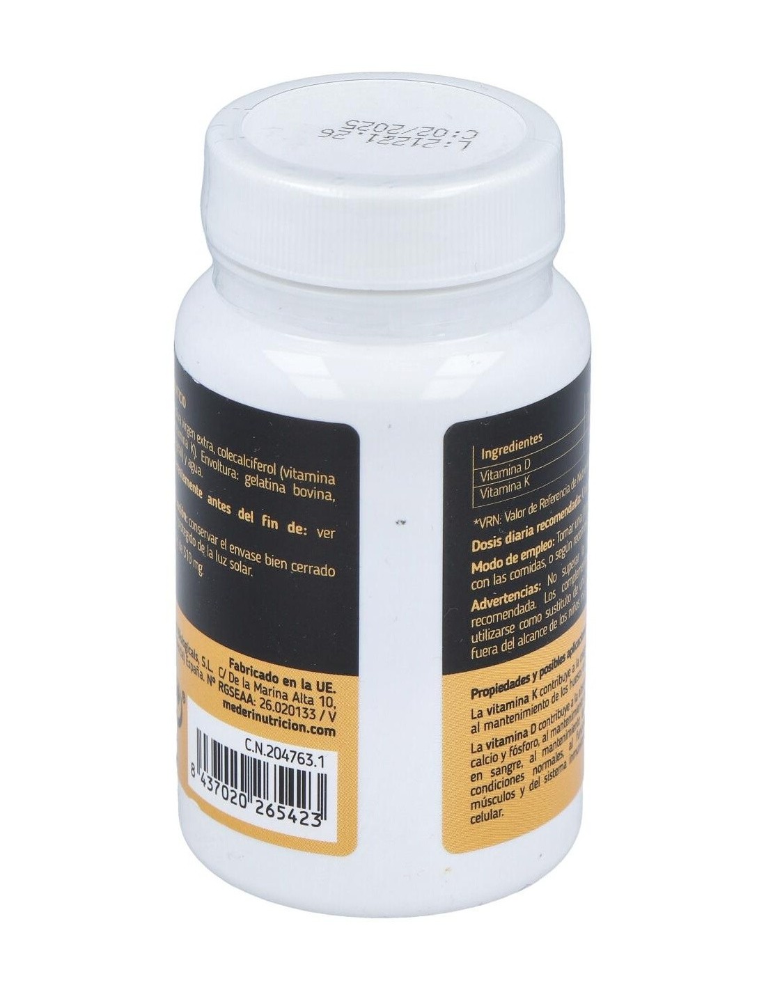 Complemento alimenticio en formato de perlas con Vitamina D3 más K2. Formulado para el refuerzo y el buen funcionamiento de los músculos, huesos, el sistema cardiovascular y el inmune. La sinergia entre sus componentes ayuda a la fijación del calcio. Las cápsulas contienen aceite de oliva para mejorar la síntesis de estas vitaminas lipoproteicas. Es apta para veganos.