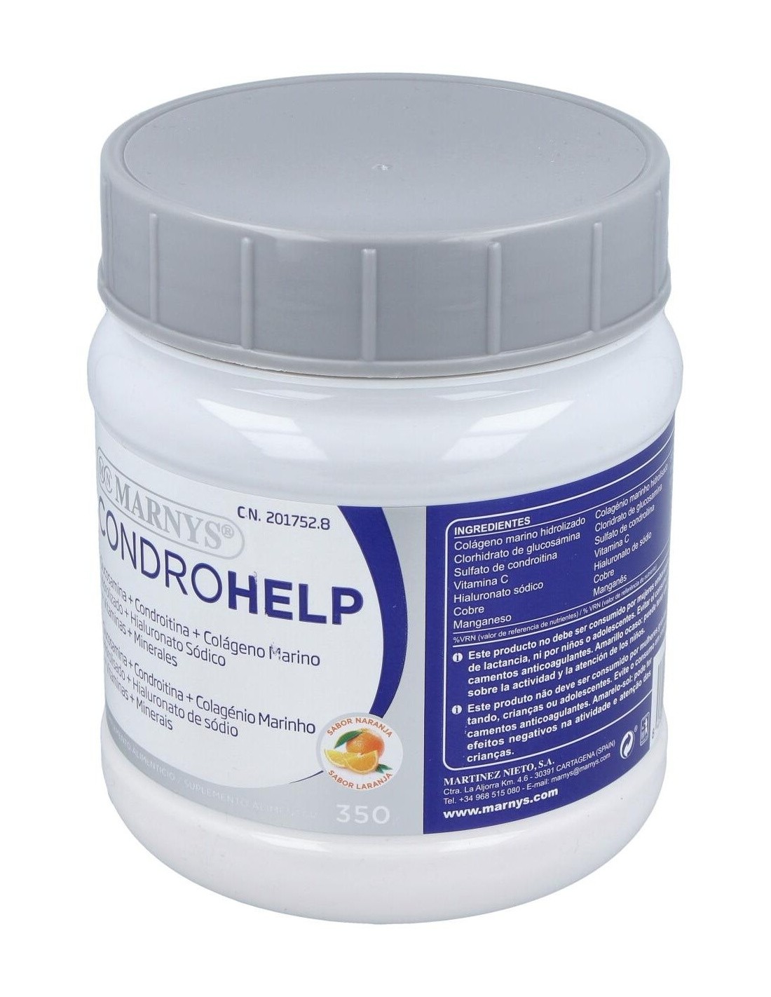 Marnys Condrohelp 350g es un complemento alimenticio en forma de polvos solubles que contribuyen a mantener y recuperar una mejor movilidad de cartílagos, tendones y ligamentos, favoreciendo una disminución del dolor durante la realización de ejercicios con impacto articular.