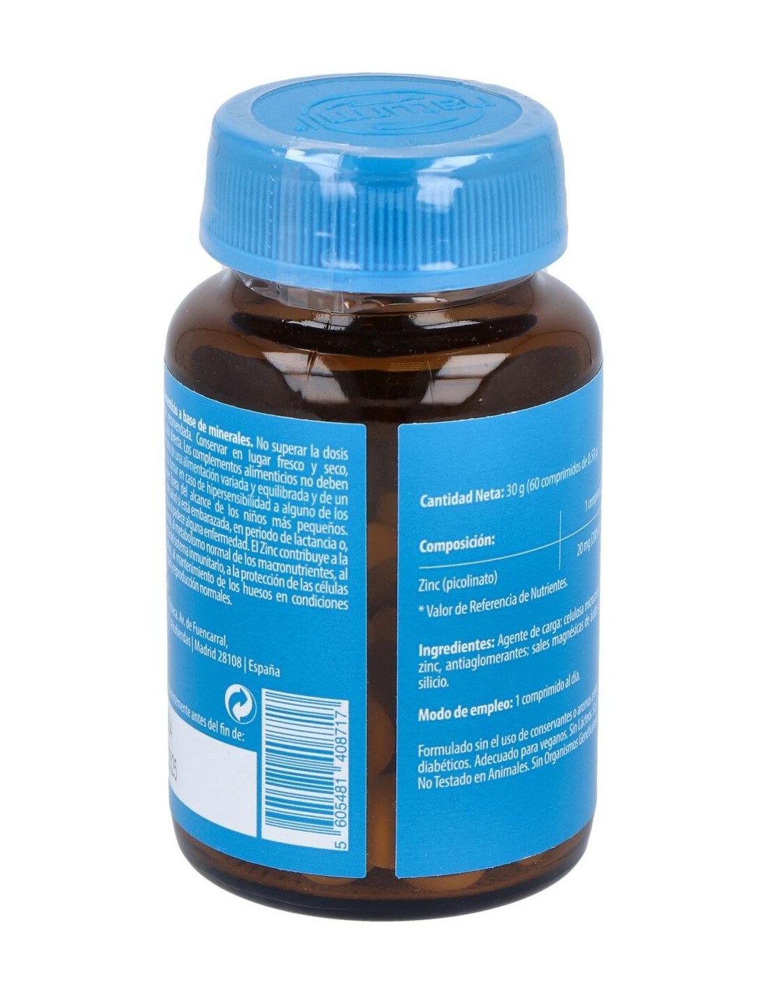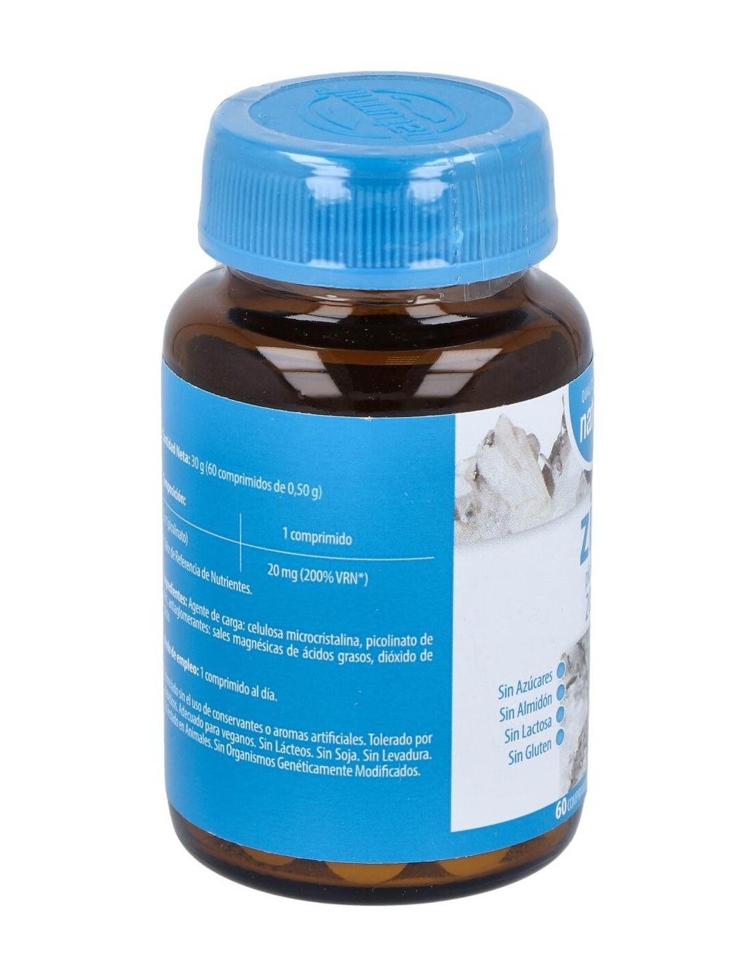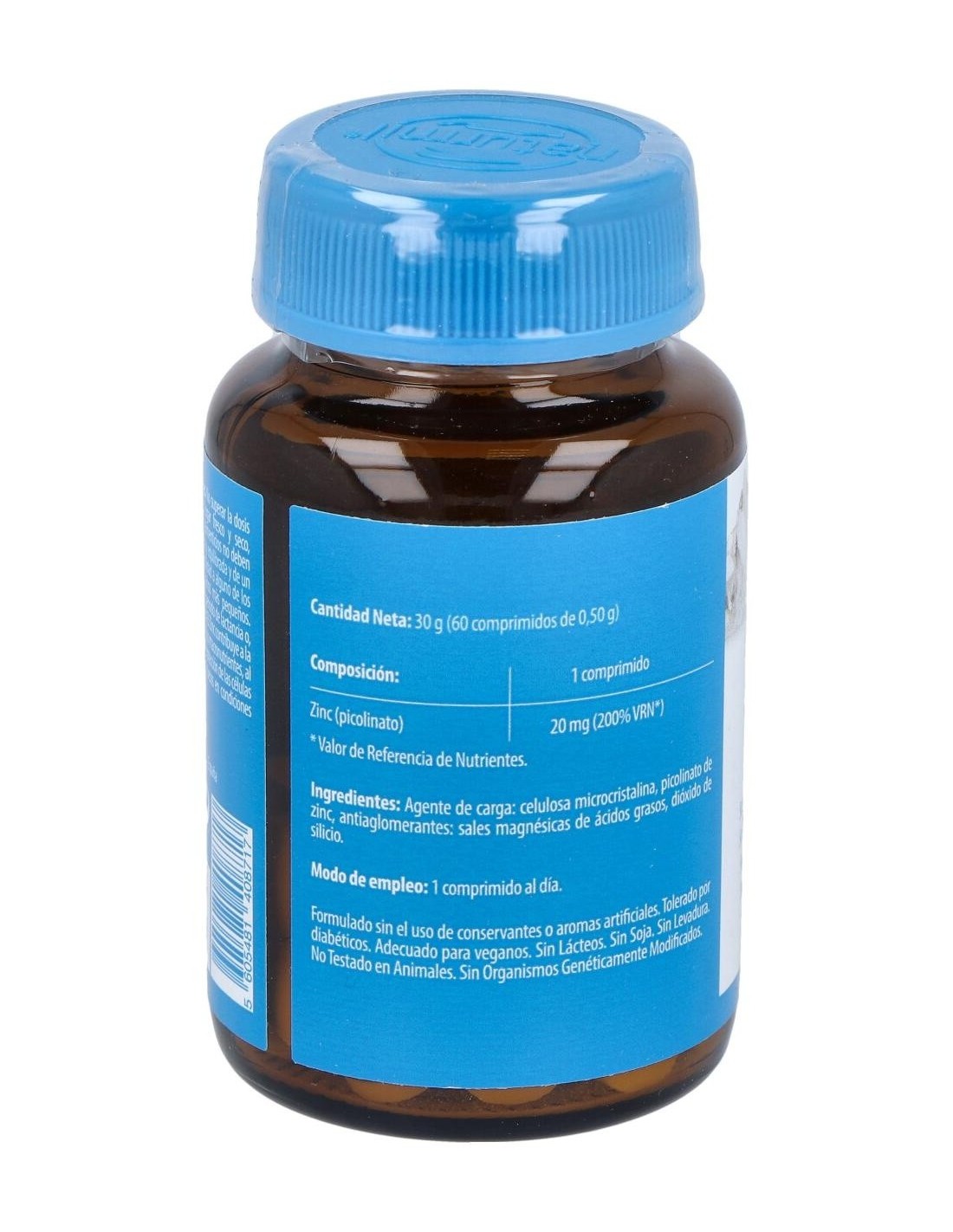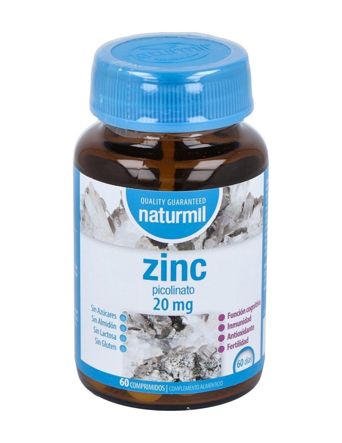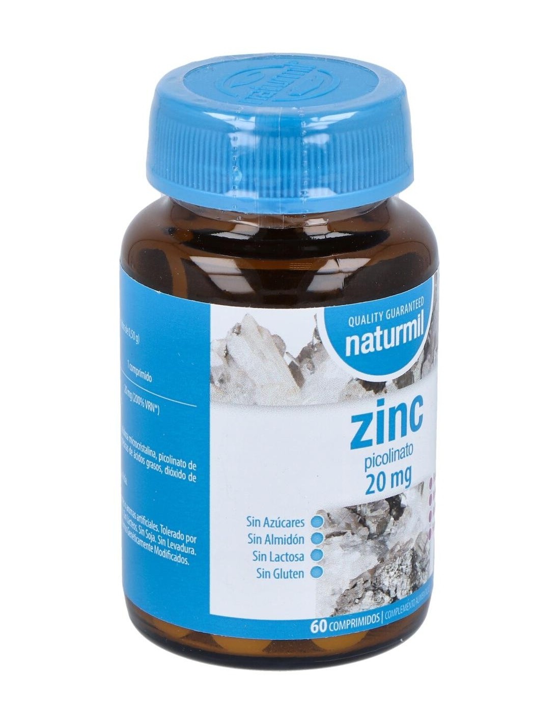 - Cada comprimido contiene 20 mg de zinc en forma de picolinato, una presentación que favorece la biodisponibilidad del mineral.
