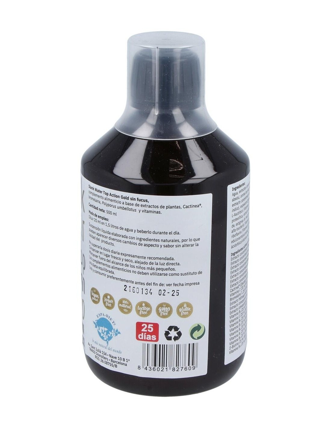 El Slank Water Top Action Gold Sin Fucus 500Ml. de Espadiet es un complemento alimenticio para personas que buscan apoyo en el control de peso, formulado sin fucus para una opción más suave y natural.