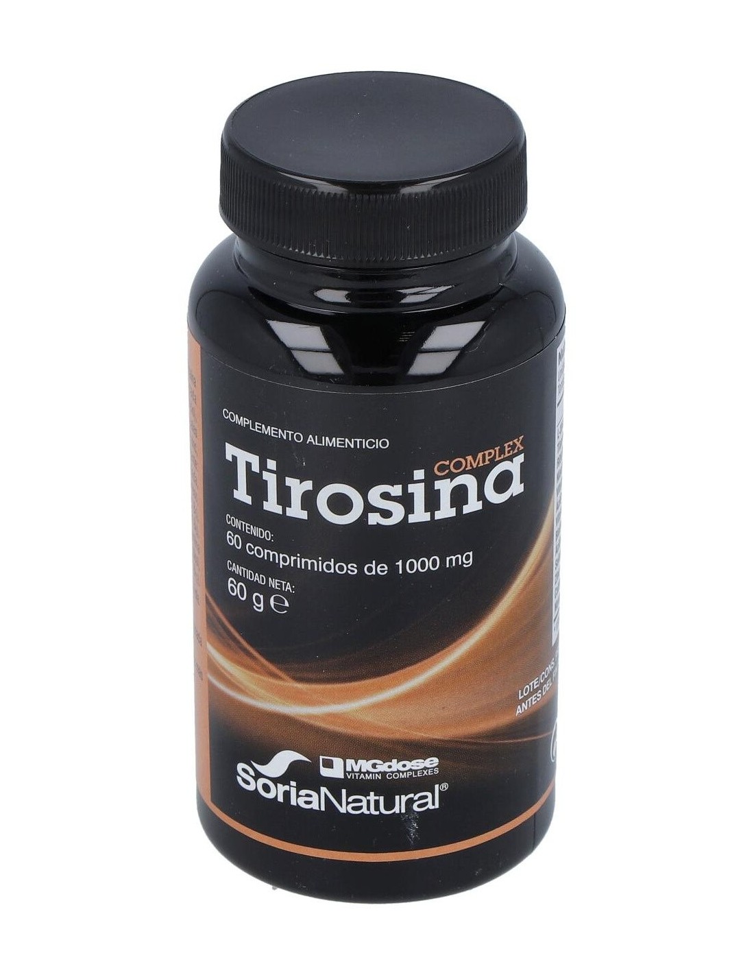 Tirosina Complex 1000Mg. 60Comp. de Mgdose es un suplemento nutricional para adultos que apoya la función cognitiva y el bienestar mental mediante una fórmula concentrada de tirosina.