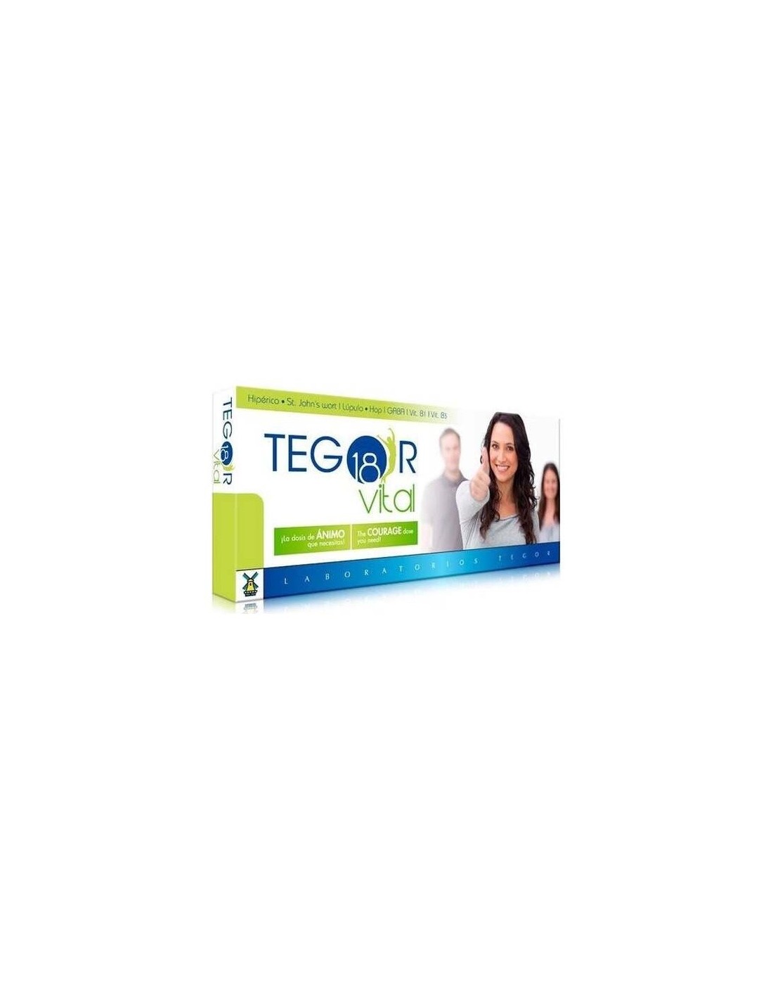 El Tegor 18 Vital 10 Viales de 10 ml es un complemento alimenticio para personas que buscan apoyar su bienestar diario, formulado con ingredientes que contribuyen a la regulación del estado anímico y el equilibrio corporal.