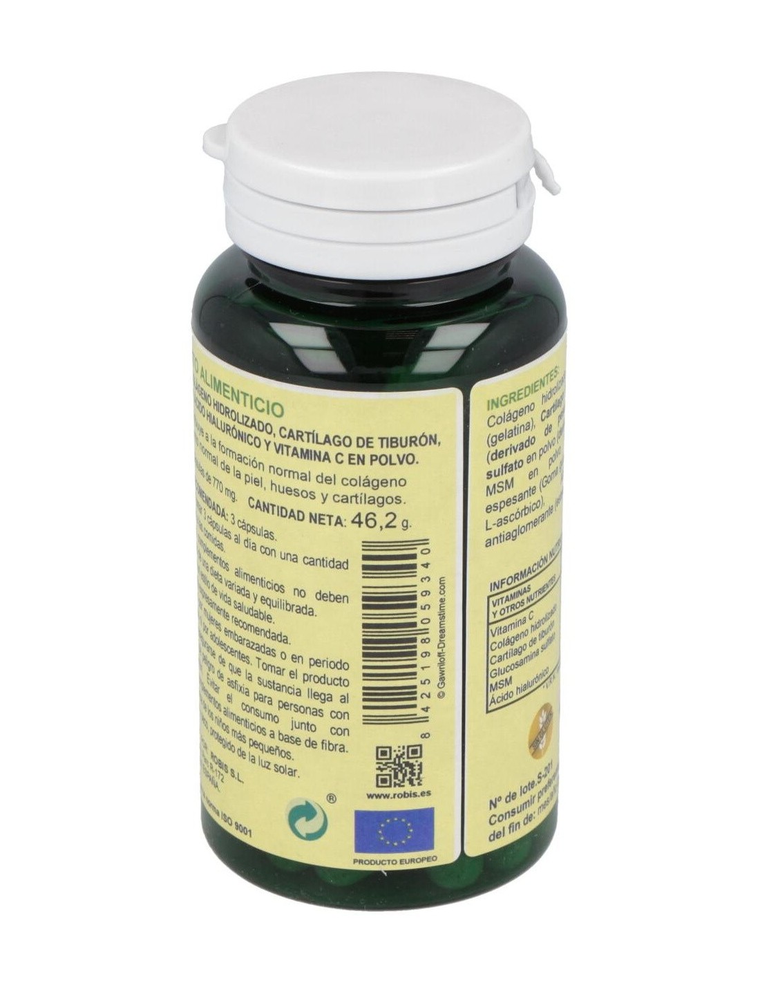 Complemento alimenticio natural que ayuda a estimular la producción natural de colágeno. Proteína que fortalece, especialmente, el sistema articulatorio, la piel, el cabello y las uñas. Es esencial para mantener el buen funcionamiento de organismo. Aporta firmeza a la piel, dureza a las uñas y luminosidad al cabello. Formato de 60 cápsulas.