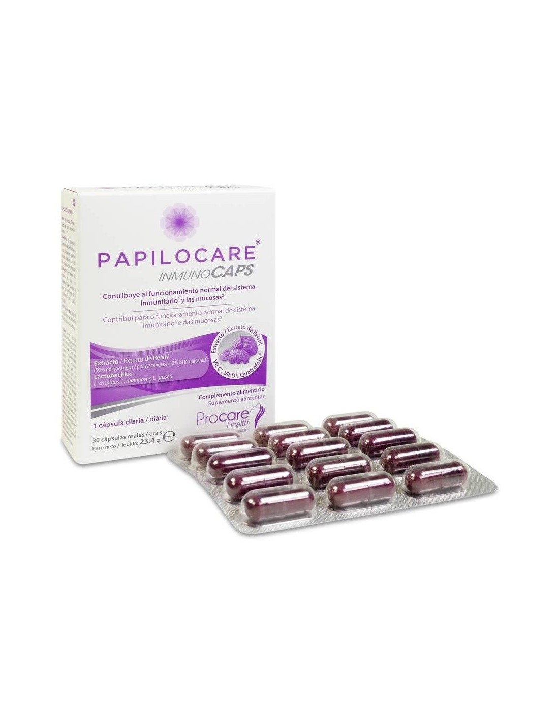 PAPILOCARETiene una composición completa a base de extracto de Reishi, un hongo medicinal similar al Coriolus versicolor, que presenta propiedades antioxidantes y que ha sido utilizado tradicionalmente como adaptógeno y como apoyo a las defensas naturales del cuerpo; distintas especies de probióticos lactobacilos (L crispatus, L rhamnosus y L gasseri) para ayudar a equilibrar la microbiota vaginal y un compuesto multivitamínico en el que destaca el Quatrefolic®, la forma activa y asimilable del ácido fólico, el cual contribuye al normal funcionamiento del sistema inmune.