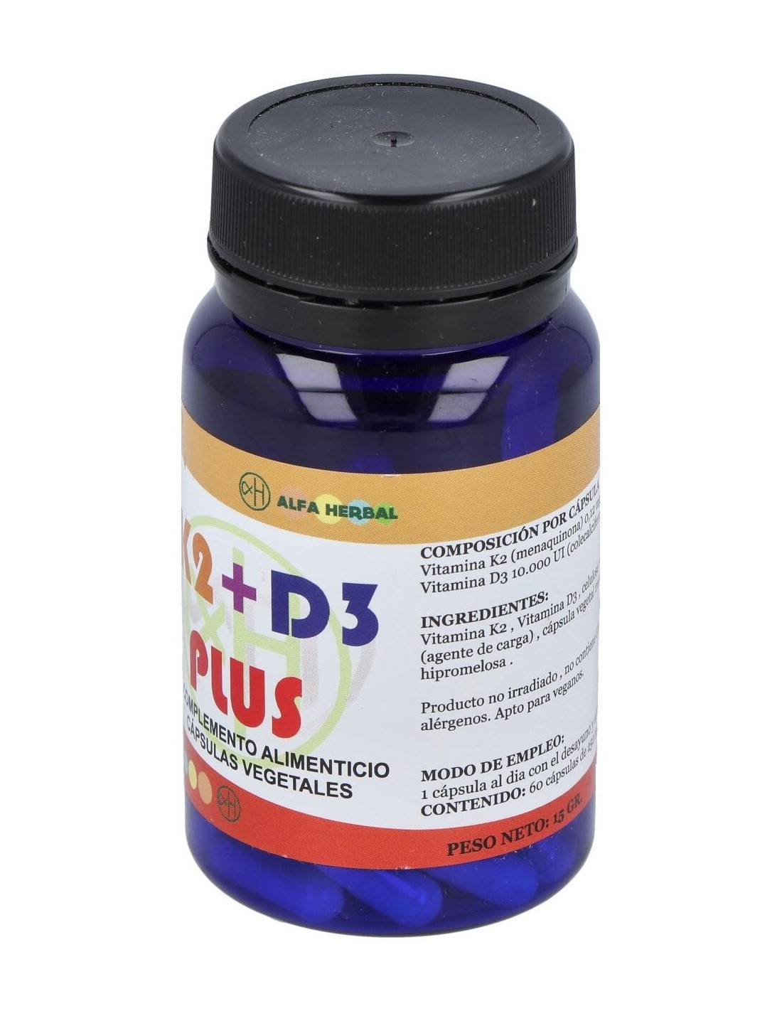K2+D3 Plus 60Vcap. Vegan de Alfa Herbal