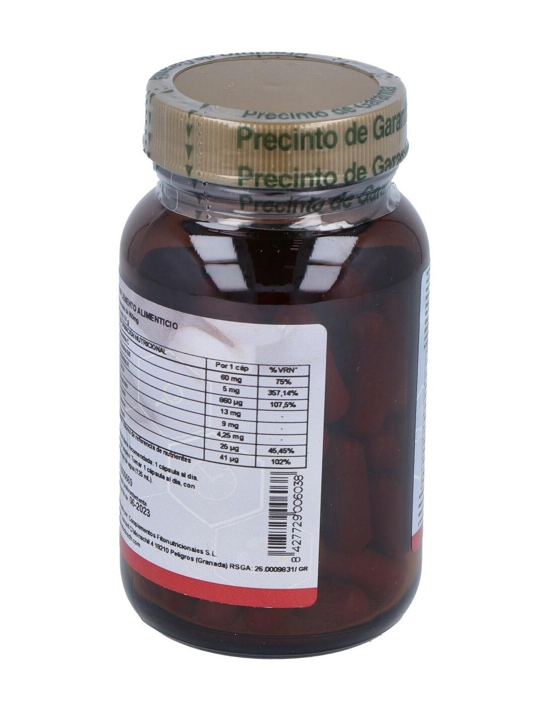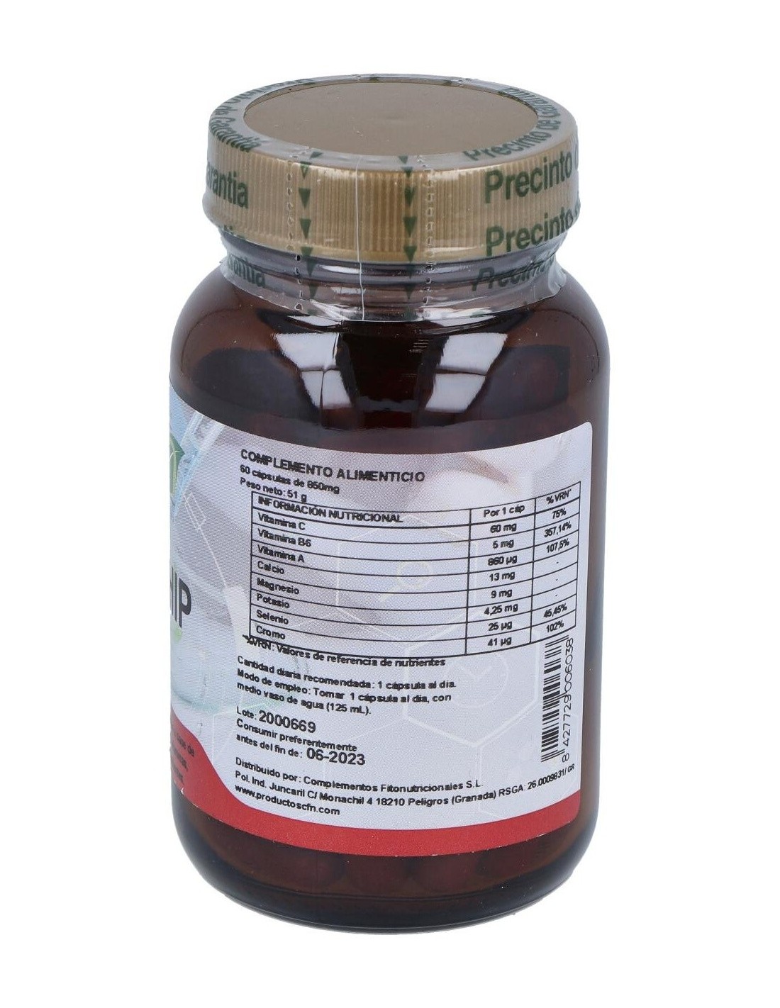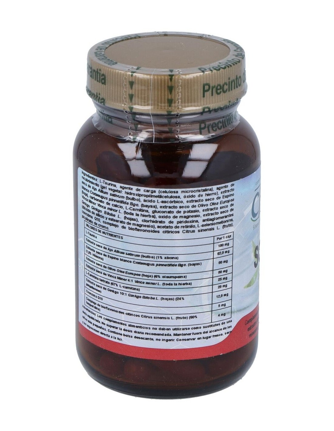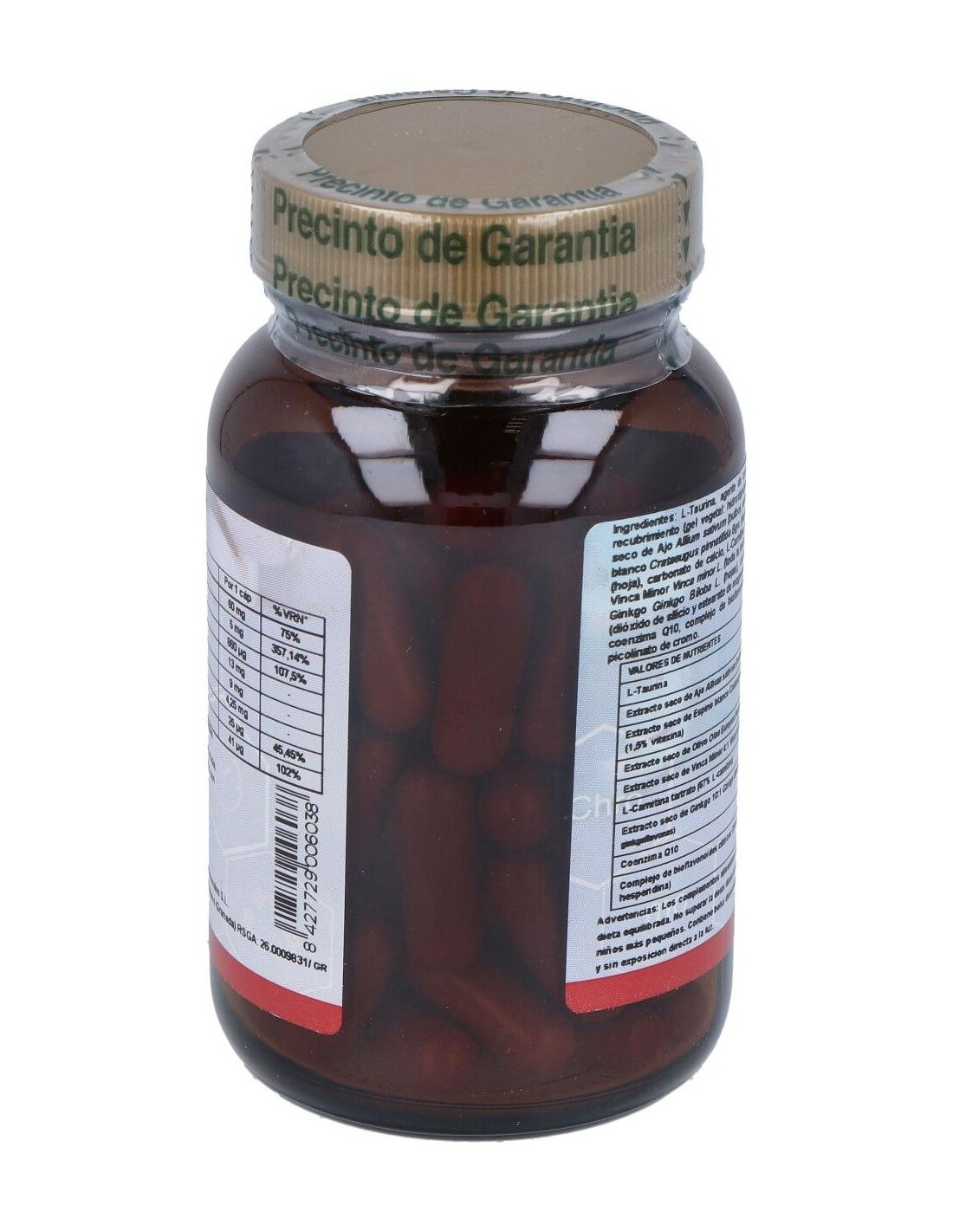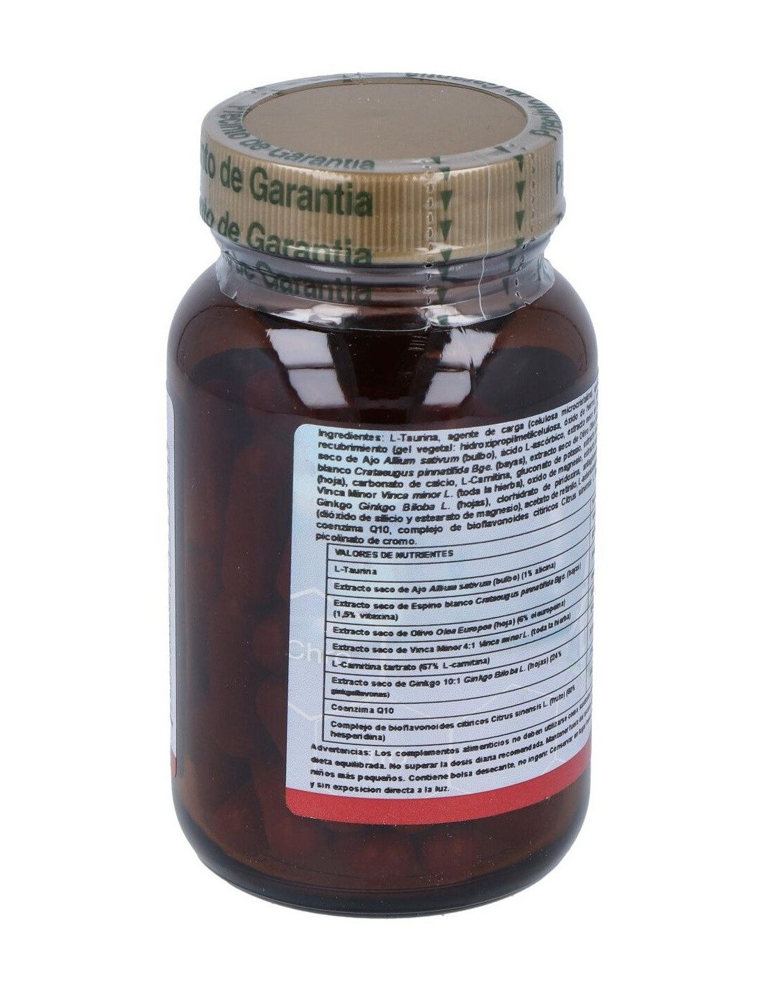 Este producto incluye una sinérgica y eficaz combinación de nutrientes, minerales, aminoácidos y extractos de hierbas estandarizados con acción reguladora sobre la hipertensión arterial. Lógicamente al igual que en otras patologías, es de vital importancia seguir una dieta apropiada recomendada por un profesional cualificado. Los hipertensos que toman vitamina E, es recomendable que la introduzcan gradualmente, si no la han tomado antes, ya que al principio puede incrementar ligeramente la presión sanguínea. Composición por 2 cápsulas: 360 mg de L-Taurina. 100 mg de calcio quelado. 100 mg de magnesio queldo. 5.000 UI de vitamina A retinol. 120 mg de vitamina C (ácido ascórbico). 10 mg de vitamina B6. 10 mg de coenzima Q10. 50 mg de L-Carnitina. 100 mcg de cromo picolinato (equivalente a 690 mcg de cromo elemental). 50 mg de potasio quelado. 50 mcg de selenio metionina (equivalente a 10 mg de selenio elemental). 100 mg de extracto seco estandarizado de espino blanco (2% vitexina). 100 mg de extracto seco estandarizado de olivo (15% oleuropeina). 50 mg de extracto de vinca minor (2,6% taninos). 25 mg de extracto de ginkgo biloba (24% ginkgoflavonoglicósidos - 6% terpeno-lactonas). 125 mg de extracto seco de ajo (1,8% alicina). Modo de empleo:Tomar 1 cápsulas al día. Presentación:Bote de 60 cápsulas.