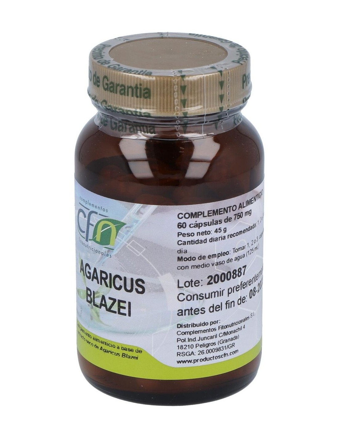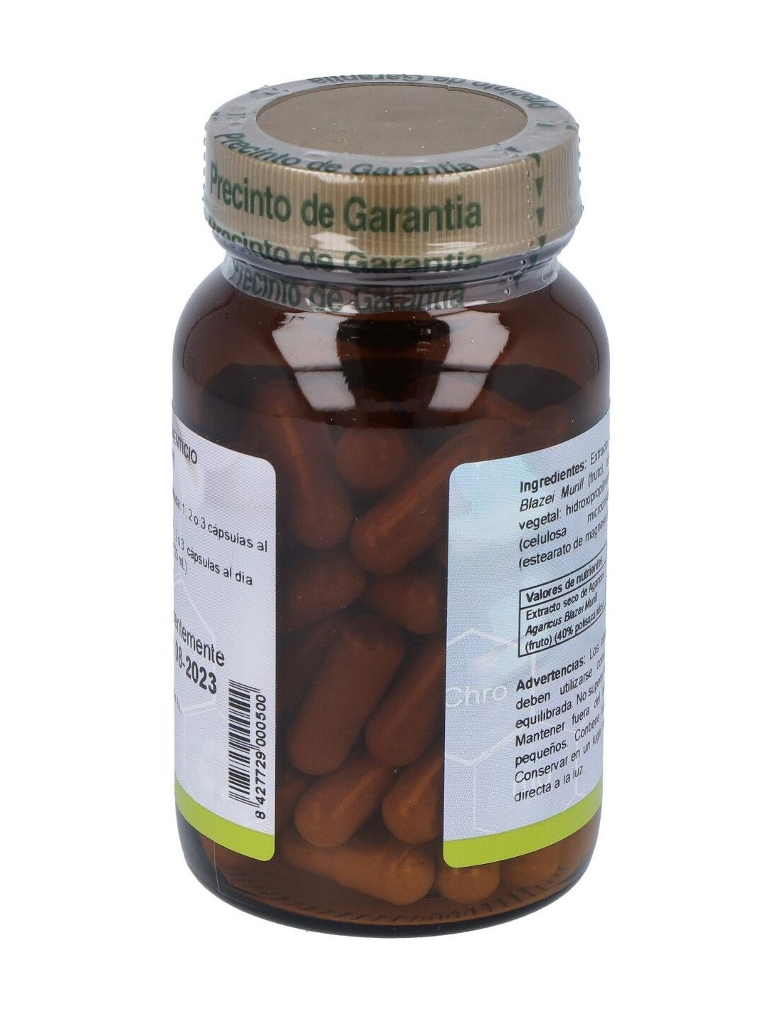 Complemento alimenticio en forma de cápsulas, elaborado a base de extracto estandarizado de agaricus blazei, que ayuda a reforzar las defensas naturales del sistema inmunitario. Ayuda a proteger la función hepática, y aporta propiedades antihistamínicas. De efecto antioxidante, contribuye a disminuir la acción nociva de los radicales libres sobre el organismo.