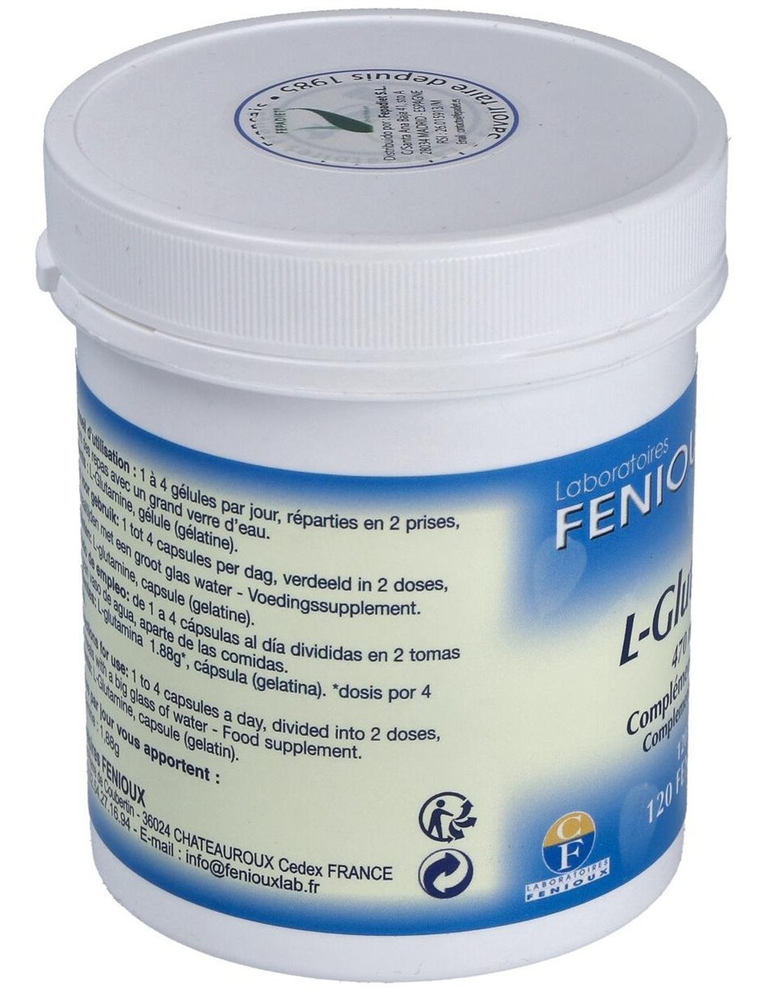 La L-Glutamina 120Cap. de Fenioux es un suplemento nutricional dirigido a personas activas que busca apoyar la recuperación muscular mediante una fórmula concentrada de glutamina en cápsulas.