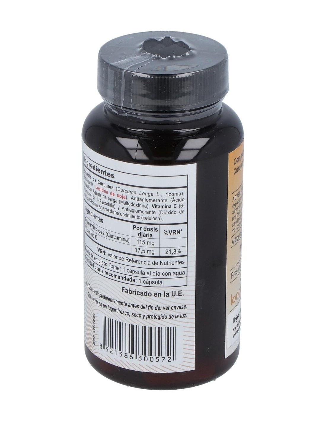 El producto está elaborado con ingredientes seleccionados para mantener la estabilidad y calidad del extracto de cúrcuma. Su diseño en cápsulas facilita su consumo en cualquier momento del día, adaptándose a diferentes estilos de vida.