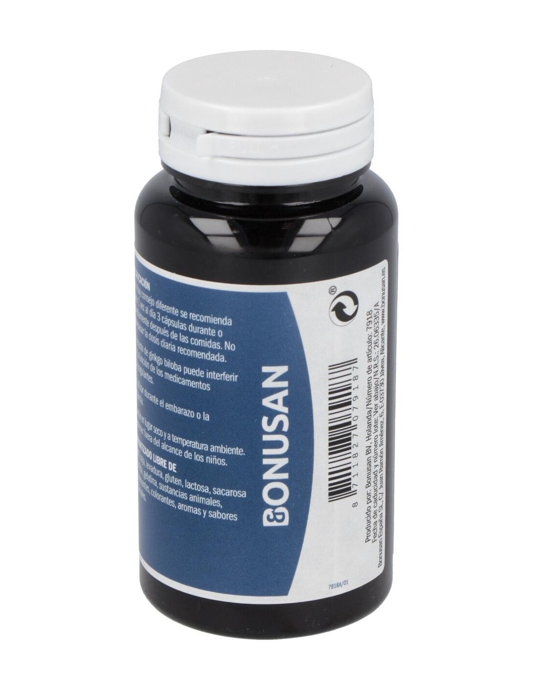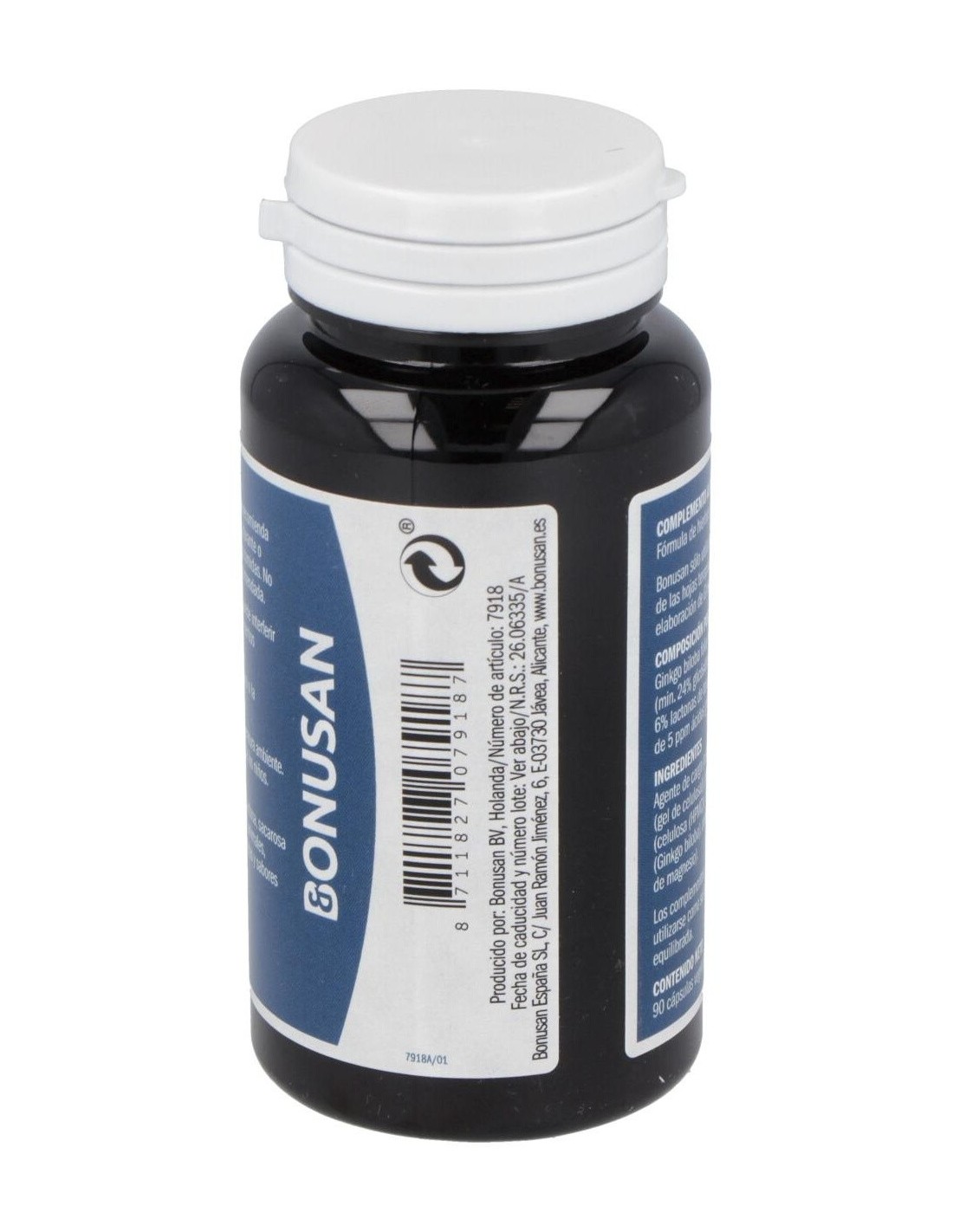 El ginkgo biloba ha sido utilizado desde tiempos inmemoriales para fomentar una mente clara. Los efectos han sido cada vez más respaldados por un número creciente de laboratorios europeos. A efectos de producción del extracto de ginkgo biloba, Bonusan sólo utiliza el más puro extracto de las hojas terapéuticas de ginkgo. Esto garantiza un suministro eficaz de sangre al cerebro y tejidos, mejorando rápidamente su concentración y memoria. Ideal, entonces, si está un poco más ocupado en su trabajo, tiene que estudiar o tiene una vida familiar ajetreada. Para efectos a largo plazo, el ginkgo puede tomarse durante largos periodos de tiempo sin problemas. Composición por dosis diaria recomendada (3 cápsula):120 mg de extracto de ginkgo biloba (24% glicósidos de la flavona del ginkgo y 6% lactonas de terpeno del ginkgo). Modo de empleo:Tomar 1 cápsula 3 veces al día con la comida o inmediatamente después de ella. Es posible aumentar la dosificación hasta un máximo de 6 cápsulas por día. Para poder juzgar bien el impacto, se aconseja una ingesta de 8 a 12 semanas como mínimo. Presentación:Bote de 90 cápsulas.