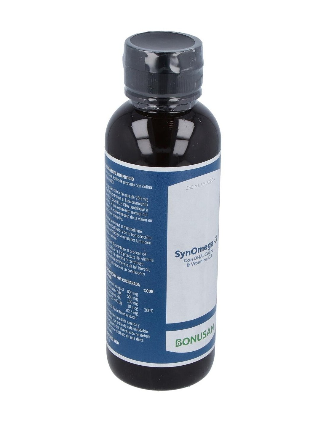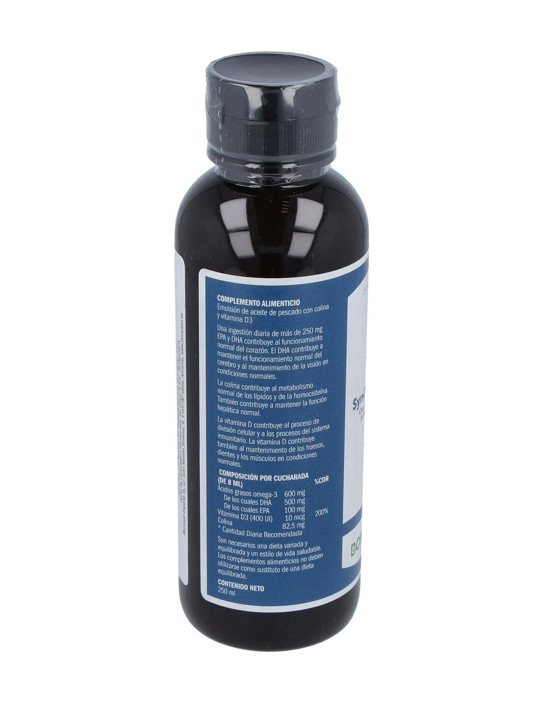 SynOmega-3 es una emulsión única a base de ácidos grasos. Además de los altos niveles de EPA, DHA y vitamina D3, contiene también la útil colina, un nutriente esencial que, entre otras cosas, ayuda a mantener la función normal del hígado y el metabolismo normal de la grasa. La emulsión de aceite de pescado purificado es inodora, tiene un sabor fresco a mango y una textura muy agradable para el paladar.