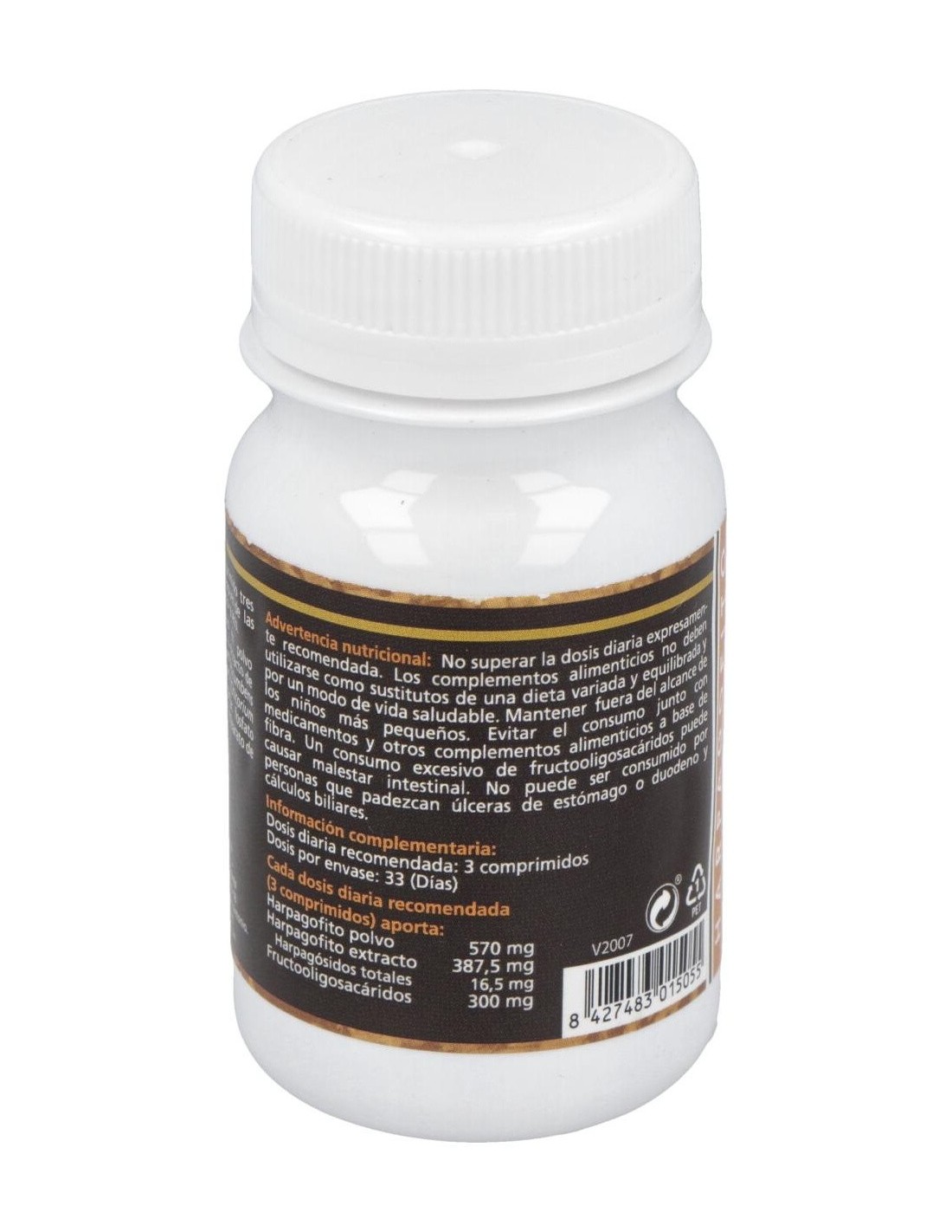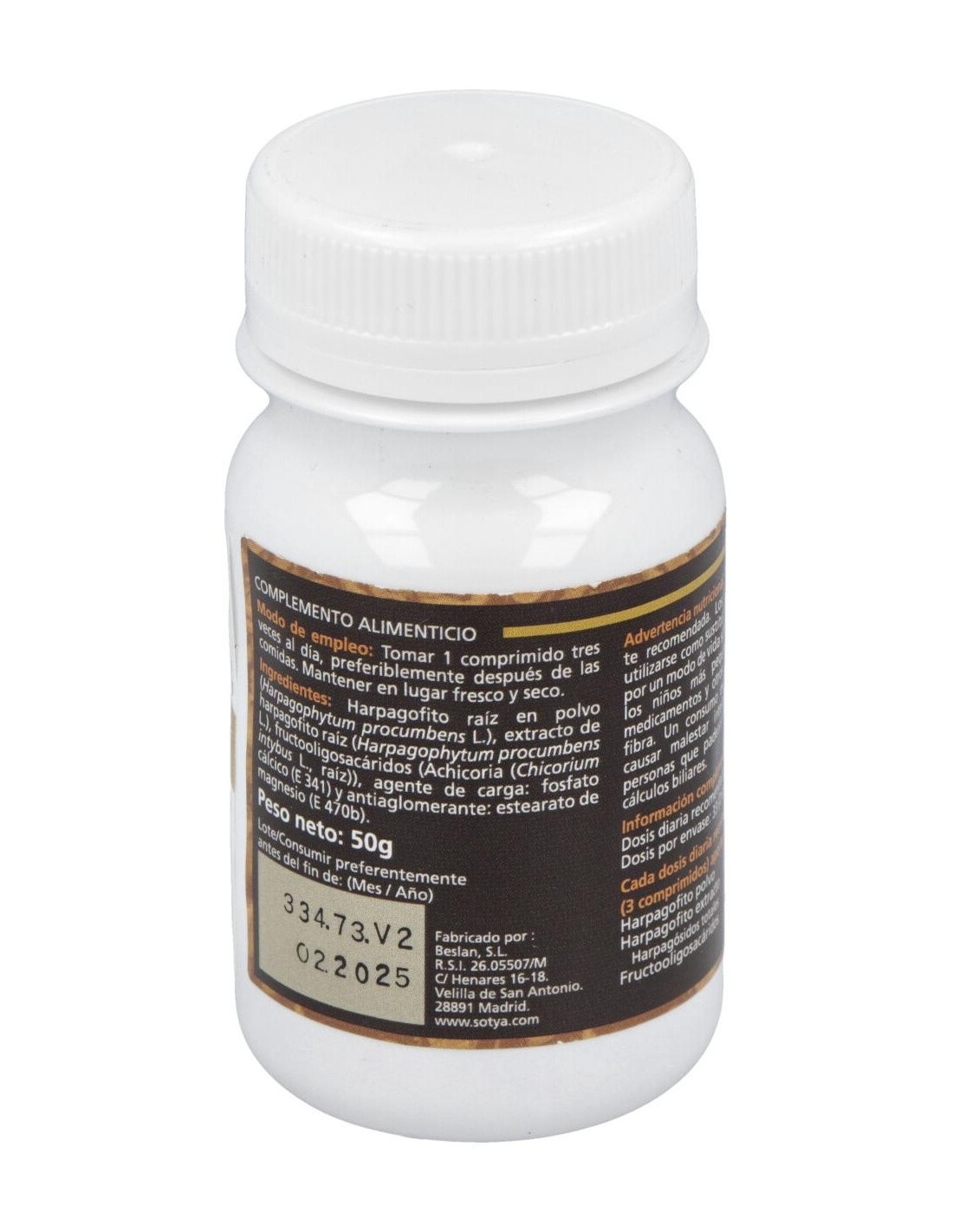 El producto está compuesto principalmente por extracto estandarizado de harpagofito, garantizando una dosificación constante en cada comprimido. Su formato en tabletas permite una administración práctica y cómoda, adecuada para quienes buscan complementar su alimentación con productos de origen natural.