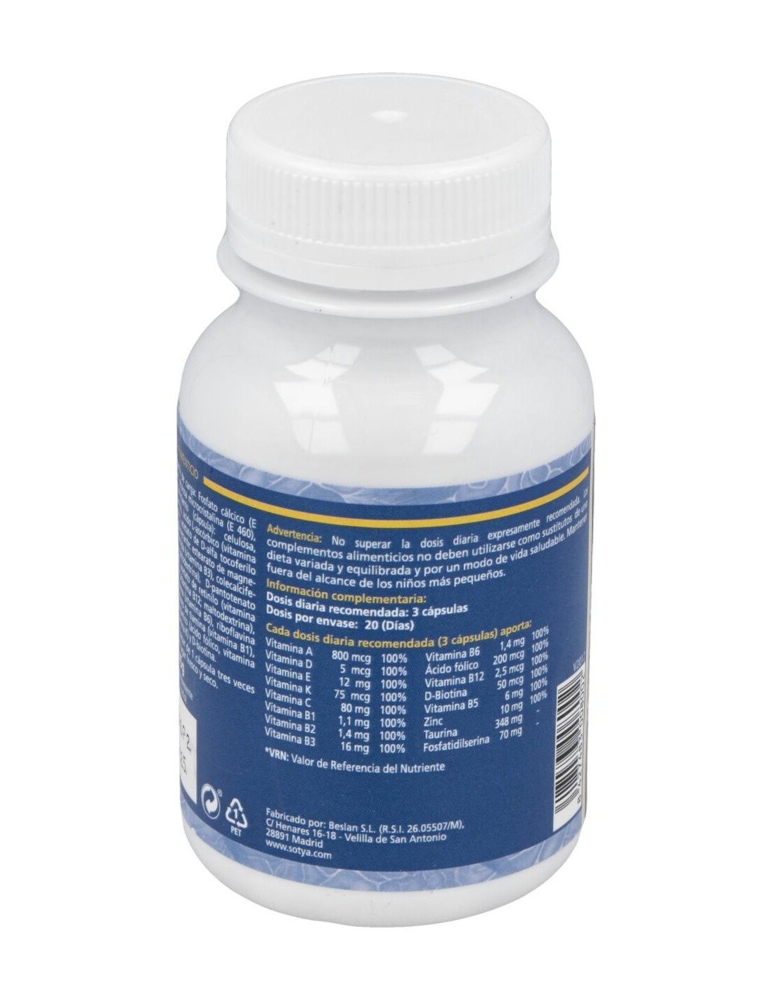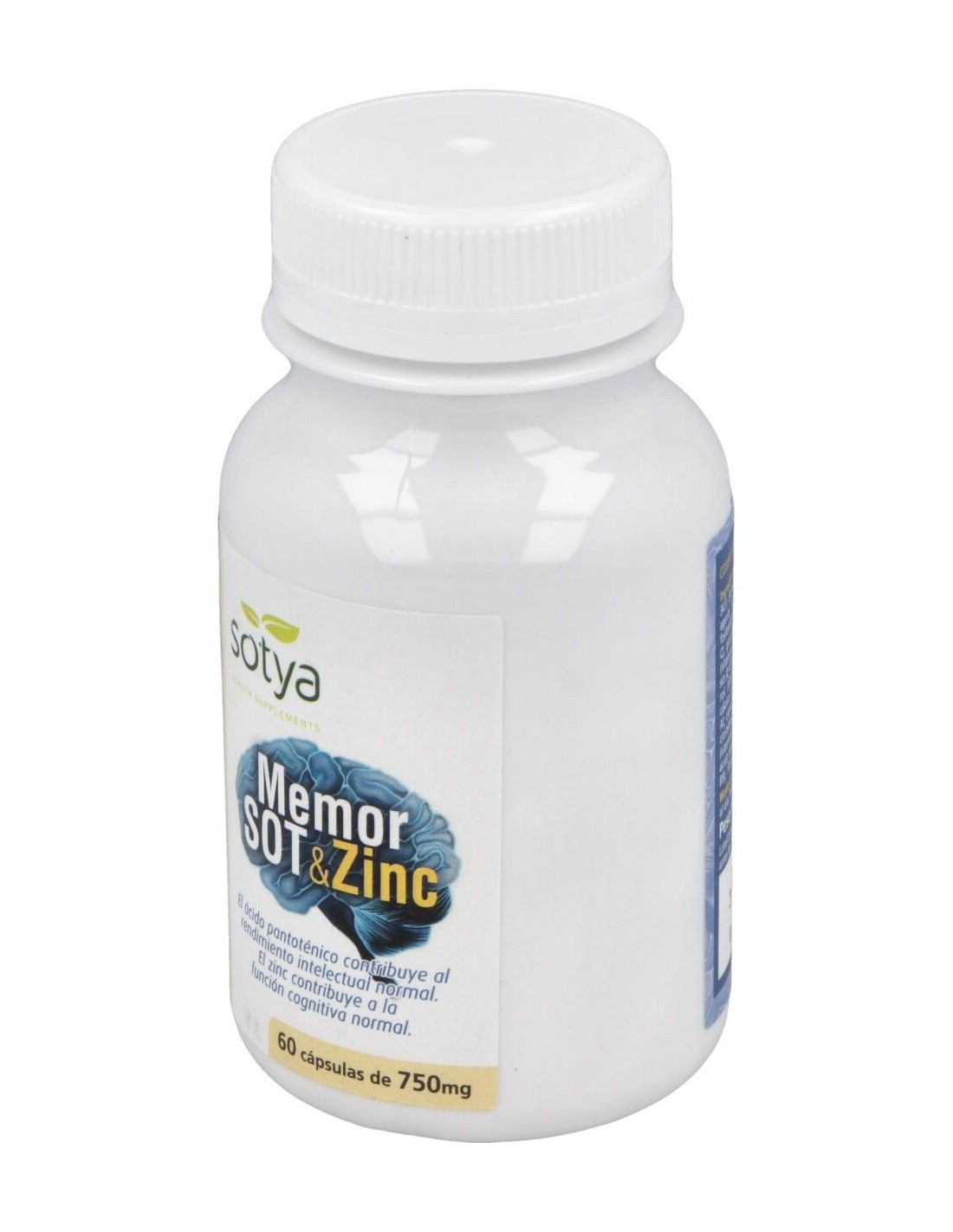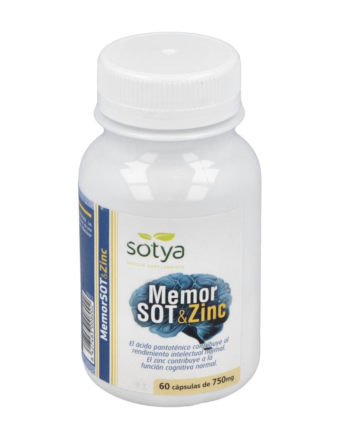 Memor Sot + Zinc 750Mg Caps 60U de Sotya es un suplemento nutricional para adultos que contribuye al mantenimiento de la función cognitiva y el bienestar cerebral, gracias a su combinación de ingredientes clave como zinc y otros nutrientes esenciales.