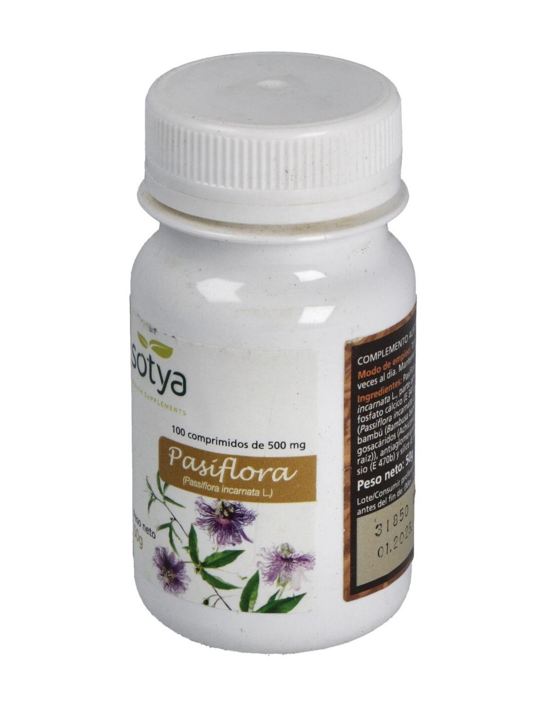 La Pasiflora 500Mg Comp. 100U de Sotya es un suplemento natural para personas que buscan apoyo en su bienestar emocional, formulado con extracto de pasiflora para contribuir a la relajación y equilibrio diario.